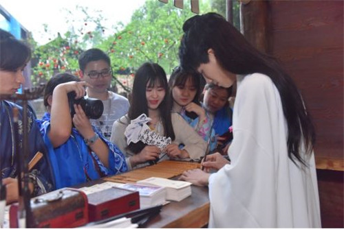 “赶古桃花源,诗酒剑侠情”,4月20日,上百名来自全国各地的,《新剑侠情缘手游》玩家齐聚重庆酉阳,与游客们一起拉开了 “酉阳桃花源第二届赶古节”的序幕。 酉阳桃花源IP“赶古节”联手腾讯游戏《新剑侠情缘手游》,在景区内将游戏IP“忘忧酒馆”的形象进行了1:1的实景线下还原,带来景区游玩体验全新升级。 【28小时的火车 从河北到重庆的一场桃源赴约】 在活动现场可以看到,从全国各地赶来的近百名剑侠玩家,有些身着酉阳桃花源的秦汉服饰,有些自带汉服手握古扇。这些玩家中最年轻的只有18岁,最年长的是41岁。其中一个00后玩家秦峰(化名)今年刚上大一,从郑州坐了17小时的火车只为赴这一场相聚之约。 玩家身着酉阳桃花源古服游览景区 97年的玩家小柯是河北承德人,4月18日从家乡连续坐28个小时的火车从河北承德到石家庄,再从石家庄到重庆,“因为每一场新剑侠情缘手游的线下聚会,能去的我都会去,我不想错过。”他告诉采访的记者。 玩家接受腾讯大渝网采访 同时,一个大二的重庆女生玩家蓉蓉告诉记者,这是她第一次来酉阳,她觉得酉阳很美,桃花源景区里很适合拍汉服,回去以后会疯狂“安利”酉阳桃花源给身边的朋友:“下次一定要带自己的父母过来度假,再穿上汉服拍美美的照片。这一次没有带汉服,有一点小遗憾,还好酉阳桃花源可以提供古装,没想到自己穿古装这么好看,我下次买一套过来打卡。” 玩家线下体验中 扇出游龙,指尖惊鸿,《新剑侠情缘手游》春季资料片水龙吟近日上线,新门派段氏强势加入江湖。在全新资料片上线之际,此次《新剑侠情缘手游》的游戏玩家聚会,通过腾讯大渝网和腾讯游戏《新剑侠情缘手游》官方联合征集,短短的3天时间内,吸引近700名真实游戏玩家报名。通过层层选拔,最终有60名玩家获得了此次2天1夜在酉阳桃花源的沉浸式江湖体验行的机会。而有些未被选中的玩家,也慕名从上海,张家界自驾赶来,只为这一场桃源之约。 酉阳桃花源第二届赶古节现场 【全国百家媒体和旅游达人齐聚酉阳桃花源】 此次活动不仅齐聚游戏玩家,同时,全国百家媒体、旅游达人也春访酉阳,进行为期2日的 “酉阳桃花源 龚滩古镇”采风行。此次采风行程可谓丰富多彩又充满新颖,全国媒体和旅游达人不仅观看了今年3月27日正式对外开放的《梦幻桃源》大型实景演出,同时也和百余名腾讯游戏《新剑侠情缘手游》玩家一起参与“酉阳桃花源第二届赶古节”,不仅领略了龚滩古镇乌江画廊的山水风情,也品尝了酉阳土家族的八大碗美食。 4月19日晚,全国百家媒体、旅游达人,以及《新剑侠情缘手游》玩家在酉阳桃源大舞台共同欣赏观看了大型演艺《梦幻桃源》,强大的艺术感染力和视觉冲击力,让每一个人身临其境、一梦千年。据悉,全新改版的《梦幻桃源》全长70余分钟,每一幕都有它的精彩之处。木叶吹奏、苗家敬酒歌、土家婚俗文化……各式歌舞轮番上阵,陶渊明笔下的世外桃源生活一一再现。 “据说光舞台搭建都用了三年时间,今日亲眼一观,3D投影和全息投影的舞台背景,让人叹为观止,真的是在所有景区里看到的肉眼3D演出里最棒的,让人忍不住就想永远生活在这样的桃源世界里。”一位来自西安的旅游大咖说。 【忘忧酒馆掌柜互动引排队 争先恐后为其容颜醉】 在20日上午11点举办的“酉阳桃花源第二届赶古节”启动仪式上,《新剑侠情缘手游》游戏玩家看到1:1复原的“忘忧酒馆”激动得跳起来。同时,周围赶古集市上卖竹编的小摊,绣秦绣的作坊,做糖画的摊铺……桃源集市上重现的各种传统工艺,瞬间让大家传穿越回到2000年前的秦晋时代。 在阵阵欢呼声中,酉阳桃花源举行了庄严隆重的“开市祈福”,进行了焚香、献礼、拜礼、分食福胙、读祝等一系列秦汉时期祭祀活动,现场还有让玩家们雀跃、让游客们争相拍照的《新剑侠情缘手游》COSER精彩表演。非物质文化遗产木叶吹奏的传承者———张宗应老师为大家带来《木叶情歌》,阵阵清脆的旋律响彻山谷。众人在歌声中围成圈,跟随村民一同跳起土家摆手舞,一同体验了投壶和竹竿舞等互动游戏,现场热闹非凡,高潮迭起。 这位非遗传承人张宗应老师在现场接受了大渝网的采访。今年50岁的他从13岁就开始学吹木叶,现有弟子40余人。他说,“只要知道旋律,我就能用任何树叶吹出来。用树叶吹奏歌曲并不难,需要一定的肺活量和长期训练,就和吹口哨差不多。”吹奏的《木叶情歌》是酉阳土家族的一首情歌。 在活动现场看到,这次人气最旺的当属“忘忧酒馆”的掌柜小哥哥,游客可拿一把空白折扇,把埋藏在心底的故事汇成一句话,让掌柜小哥哥将这句话用书法题字在扇面上。这位写书法的小哥哥人称“故里”,他告诉记者,从小在爷爷耳濡目染下,练就了一手好书法。这一次,他靠颜值和才华吸引了众多游客,来体验的人络绎不绝,争前恐后排队要他写字。据说有个小姐姐就是专程来看他的。 腾讯大渝网此次也有幸邀请到,酉阳县桃花源旅游投资集团营销总监剡晓莉接受采访。她告诉记者,“酉阳桃花源第二届赶古节,特别引入腾讯游戏《新剑侠情缘手游》,线上既有小程序的互动体验,线下还可以来桃花源感受古集市和游戏场景,可谓是‘古人赶集,今人赶古’,一场虚拟与现实的穿越。”据悉,凡是《新剑侠情缘手游》玩家,可享半价50元购酉阳桃花源门票
