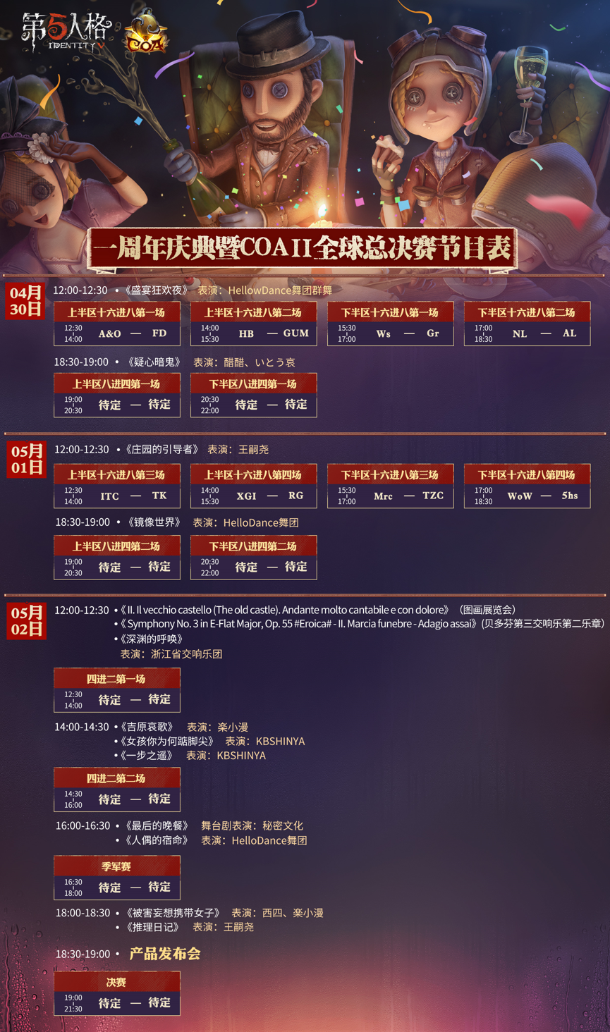 在即将到来的五一小长假期间,网易首款非对称竞技手游《第五人格》正式开启一周年线下生日派对,共同展开一段奇妙心跳之旅!与此同时,紧张刺激的COAⅡ全球总冠军争夺战也将打响,各大精英战队云集上海欢乐谷共同争夺全国总决赛的冠军。为感恩玩家们一年来的陪伴与支持,游戏诚邀玩家共享这场史诗级的盛大狂欢派对! 线下盛典 冠军争夺一触即发 4月30日12时的HellowDance舞团精彩的开场舞之后,COAⅡ全球总冠军线下争夺将在上海欢乐谷正式打响!之后的7个小时内,经过中国大陆预选赛诞生的ITC战队、XGI战队、RG战队、Ws战队、Gr战队、Mrc战队、TZC战队、5hs战队等7支队伍,将与其他赛区的8支战队,以及1支跨平台精英赛冠军直邀战队进行第一轮的十六进八以及八进四的比赛,同时B站知名up主醋醋和いとう哀也将联袂献上动感活泼的舞蹈表演。 五一劳动节当天的同一时间段,现场观众不仅可以见证四强的诞生,还可以欣赏到国际范Rapper王嗣尧演唱的,根据游戏创作的歌曲《庄园的引导者》,在HellowDance舞团的舞蹈中进入“镜像世界”。 在5月2号决赛日当天,浙江交响乐团将会为大家带来贝多芬的交响乐以及原创曲目《深渊的呼唤》,在磅礴的乐声中,四强将正式发起对冠军的最后争夺。而在比赛的间隙,玩家们还可以欣赏由西四、楽小漫等B站知名up主带来的歌舞表演。伴随着这无尽的狂欢,COAⅡ全球总冠军的最终得主也将揭晓! 另外,在4月30日至5月2日每天的13点至18点期间,参加COAⅡ全球总决赛的精英选手将会与粉丝们进行线下见面会,届时玩家们可以面对面的向他们请教游戏技巧,或者是一诉自己的喜爱之情。 现场互动 集齐印章领取豪礼 为了使所有参加的游客更好的融入这场盛大狂欢,官方在深圳、北京、成都、武汉、天津、重庆其余六城的欢乐谷设置分会场,并且准备了丰富的互动游戏。前往现场的玩家不仅可以观看比赛的实时直播,还可以通过挑战游戏关卡或寻找隐藏NPC进行互动。游戏主题街共准备了“威廉的拳击场”、“幸运骰子”、“最佳破译”等8种互动游戏,以及“庄园见面会”、“环道舞台”、“角色大厅”等8处打卡点,这些趣味游戏将会全方位的考验玩家们的能力,比如“幸运骰子”要求玩家与“幸运儿”进行骰子对决。当成功完成关卡后,就可以获得对应印章,凭借它们可在“幻象大厅”中兑换玩偶公仔等精美周边。 顶级品牌 多面维度鼎力支持 4月30日至5月2日,COAⅡ全球决赛即将在欢乐谷举办,其承袭华侨城独有的创想文化内核,集成世界领先的高科技游乐设施、国际接轨的都市演艺精品、深具人文魅力的主题文化体验,用“动感、时尚、激情”的品牌个性与丰富内涵,向现代都市人提供愉悦身心的多元化旅游休闲方式与都市娱乐产品。 东西南北中,欢乐大中国!一次次惊心动魄的欢乐历程,一个个亦真亦幻的欢乐世界,一座座永不落幕的欢乐之城。随着深圳、北京、成都、上海、武汉、天津、重庆七大欢乐谷相继落成运营,以及在建的第八个欢乐谷——南京欢乐谷,欢乐谷主题公园已累计接待了1.8亿人次的海内外游客,当之无愧地成为中国连锁主题公园第一品牌。在未来的前进道路上,欢乐谷连锁主题公园还将继续锐意进取,引领中国旅游产业不断升级,为中国人创造欢乐。 本次COAⅡ全球赛由欢乐谷独家赞助,京东代属和SteelSeries赛睿联合赞助!京东代属是针对于高校学生用户群体打造的一款小程序,致力于为大学生提供高性价比精选商品。SteelSeries赛睿是全球高端游戏装备的领军品牌,备受世界大多数顶级电子竞技俱乐部和众多职业选手所青睐,二者将共同为《第五人格》COAⅡ全球赛增添光彩! 《第五人格》一周年生日会即将奇妙开场!快带上你的小伙伴加入这场奇妙心跳之旅,一同见证COAⅡ全球总冠军! 【关于第五人格】 《第五人格》是网易首款非对称性对抗竞技手游。荒诞哥特画风,悬疑烧脑剧情,刺激的1V4的对抗玩法,都将给玩家带来全新的游戏体验。玩家将扮演侦探奥尔菲斯,在收到一封神秘的委托信后,进入恶名昭著的庄园调查一件失踪案。在进行证据调查过程中,玩家扮演的奥尔菲斯将采用演绎法,对案情进行回顾。在案情回顾时,玩家可以选择扮演监管者或求生者,展开激烈的对抗。而在调查的过程,无限接近事实时,却发现越来越不可思议的真相。 《第五人格》官方网站: http://id5.163.com 《第五人格》官方微博:网易第五人格 《第五人格》微信公众号:第五人格 《第五人格》官方贴吧:第五人格 《第五人格》网易大神:第五人格 |