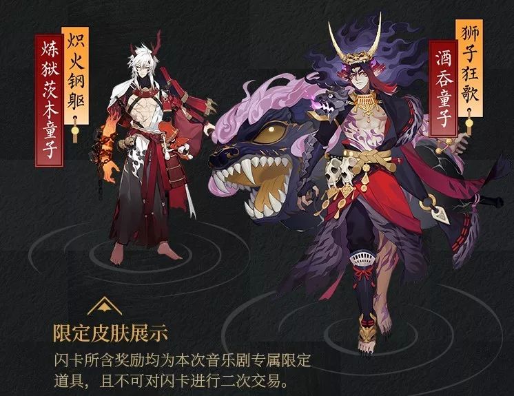 弦琴相鸣,共铸羁绊之歌。众妖集结,来到各位阴阳师的城市发起现世妖约!音乐剧《阴阳师》~大江山之章~夏季巡演部分城市售票开启! 【音乐剧巡演城市】 巡演票价:180元 / 380元 /580元 / 780元 / 980元 / 1280元 购票方式:各位阴阳师可选择以下购票渠道购买心仪的场次门票。复制链接至浏览器即可打开。 购票渠道1:淘宝 https://shop492718238.taobao.com/ 购票渠道2:大麦 http://t.cn/EoLgRTy 购票渠道3:bilibili https://www.bilibili.com/blackboard/activity-hclEuKGB0.html 注意:夏季巡演城市计划追加北京站和重庆站,具体开票时间请关注官方信息。 【音乐剧福利】 购买门票的阴阳师可获得以下音乐剧专属限定福利!购票福利将以闪卡形式在演出现场进行发放,届时可凭票领取对应档位的闪卡。 限定皮肤福利--酒吞童子·狮子狂歌、炼狱茨木童子·炽火钢躯。 寮办还将加大赠票回馈,已规划在音乐剧巡演前于各个演出城市开放LBS活动,随机掉落音乐剧门票。 【音乐剧限定皮肤获取方式】 1、音乐剧售票中的附赠闪卡 现场观看音乐剧的阴阳师将直接获得限定皮肤等福利回馈。 2、好友馈赠 对于音乐剧限定皮肤,寮办也开发了赠送功能,观看音乐剧的阴阳师可以把购票获得的额外皮肤赠送给其他阴阳师。(好友赠送需要满足一定的关系度条件哦) 3、活动获取 在未来音乐剧巡演结束后,寮办也规划了类似稻荷御礼的活动进行稀有投放,预估在音乐剧年度巡演完成后的一段时间后开启。 【日本公开彩排大放送】 在大江山之卷即将降临现世之际,音乐剧《阴阳师》~大江山之章~日本琦玉公开彩排进行中!寮办奉上彩排现场第一手情报,诚邀各位阴阳师先睹为快! 罗袖翩跹舞起,叙尽平安轶事。音乐剧《阴阳师》~大江山之章~夏季巡演即将启幕,期待与各位一同奏响这华美恢弘的乐章! 更多精彩内容,请关注 《阴阳师》官方网站(yys.163.com)、《阴阳师》手游公众号(yinyangshi163)。 【关于“网易大神”】 网易大神是网易游戏旗下的精英玩家社区。这里汇聚了广大精英玩家、游戏圈红人、行业大咖,集合了网易独家的官方资讯和福利趣闻,旨在为玩家打造一个丰富的游戏兴趣社交圈。玩家可以在网易大神与游戏中的好友实时聊天、多元互动;以游戏会友,结交更多游戏同好,和大神一起发现更多游戏乐趣。 官方网站:https://ds.163.com 官方微信:wyds_163 官方微博:@网易大神 APP 官方大神号:@网易大神 【关于《阴阳师》手游】 网易自研旗舰级IP,唯美空灵的和风写意,经典的半即时回合制RPG,卡牌收集、养成,基于LBS技术的社交PK,新番剧情跌宕起伏,上百种式神亟待觉醒。2018年9月19日二周年庆版本上线,美术风格全面迭代升级,高精度模型、式神点触系统逐步焕新,全新式神阶级“SP”重磅登场。3D唯美和风手游《阴阳师》等你展开神秘的奇幻之旅。 官方网站:https://yys.163.com 官方微信:yinyangshi163 官方微博:@网易阴阳师手游 官方哔哩哔哩:网易阴阳师手游 官方TapTap:https://www.taptap.com/app/12492 |