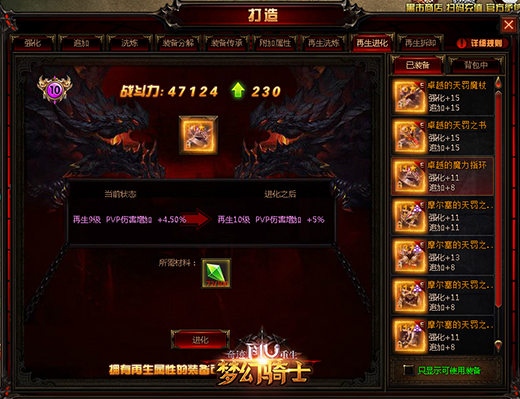 《奇迹重生:梦幻骑士》每天都有各种好玩的战斗活动,特别是在跨服战场中,我们还可以与其他服务器的玩家过招。不过想要在各种战斗活动中获得胜利,就需要我们拥有过硬的PVP实力才行哦! PVP属性是《奇迹重生:梦幻骑士》玩家们最重要的追求之一。因为它将决定我们的战斗表现,它将影响每一场战争的胜负。只有玩转了PVP属性,才能成为真正的战斗强者! 王侯将相,唾手可得 PVP属性主要分两种,一种为PVP增伤,一种为PVP减伤。要获得这两个属性的最简单途径就是《奇迹重生:梦幻骑士》的爵位玩法。随着我们的爵位等阶不断提升,我们也会获得大量的PVP属性加成。特别是当我们爵位达到国王甚至皇帝的时候,PVP属性加成的比例可是相当大哦! 最极品的再生属性 装备的再生属性是《奇迹重生:梦幻骑士》最重要的装备属性之一。在装备获得了再生属性之后,我们还可以通过打造玩法提升装备的再生等级,让属性加成进一步提高。而PVP属性也是可以通过再生属性获得的哦!不过想要获得这个极品再生属性,就需要花点时间积攒材料通过再生洗炼玩法获得了! 真正的神装 大天使装备玩法能带给我们的可不仅仅是简单的属性加成。作为真正的顶级神装,PVP属性也是可以通过大天使装备获得的。大天使装备中的“护腿,衣服,左翼,右翼”是可以通过附魔玩法来提升PVP属性加成。 有了这么多途径来提升职业的PVP属性,你还不赶紧行动起来。收集材料,打磨自己的PVP战斗能力,让自己成为《奇迹重生:梦幻骑士》真正的战斗强者吧! 《奇迹重生:梦幻骑士》战场活动激情无限,跨服匹配玩法更多对手,更多激情。加入塔人《奇迹重生:梦幻骑士》,加入激情战场,让我们战个痛快吧! |