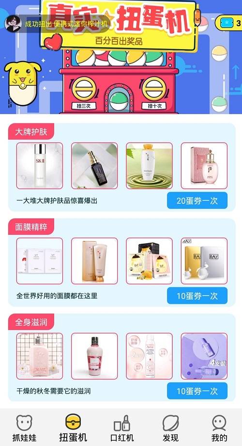 市面上各大商场现在标配都会有游戏厅,里面的娃娃机、扭蛋机、口红机、推币机、街机等各种游戏机大家或多或少也接触过,我们要说的是这家叫抓个娃娃的app,直接把这些机器全部放进了手机里。全部真实机器,在家就能体验去游戏厅玩的乐趣!小编整个amazing! 简单说说抓个娃娃app的娃娃机,单从画面清晰度上就很厉害了,最酷的我觉得是他们做的这个瞄准器,精准到从不失手,从没抓到过娃娃的朋友们可以体验一下什么叫一抓一个小朋友,也不知道这家老板怎么想的,是做慈善吗??? 扭蛋机都是真实机器放在那里,跟娃娃机一样拿摄像头给你看到,扭到什么全凭运气了,有10块钱扭到榨汁机,也有100块扭到神仙水的,反正就还挺公平的。不像有些虚拟扭蛋,都是后台控制给你什么东西稳亏。 口红机是最近火起来的,有人质疑口红机难度,有人质疑口红真假。这家直接把大家担心这两点全打消,首先口红来源全是京东小红书自营、各种官方渠道发货,而且每玩一次就可以抵扣购买,就等于你玩了几次就可以用很低的价格把它买走,实在玩不过前面花的钱也不会浪费就是了,非常贴心。 还有非常火的推币机,金币不够就去推一推,中jp奖还有实物奖品。总结起来这个抓个娃娃app非常贴心,把你能想到的一些问题都考虑到了。新用户登录就领100币,填邀请码10748再获得60币,新手推币机2币起,送的币够小试一把了!ps:邀请好友可领现金红包~ |