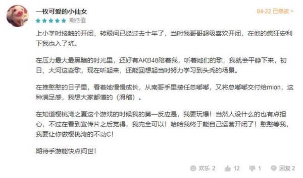 盛趣游戏和AKB48 (China)共同推出的AKB48正版授权手游《AKB48樱桃湾之夏》(官网:akb48ytw.web.sdo.com)即将在本月开启邀请测试,柏木由纪担当测试招募官欢迎各位“经纪人”体验测试。随着测试月的到来,《AKB48樱桃湾之夏》在游戏知名平台TapTap的评分也达到了9.7分,入围预约排行榜,玩家们也给予了极高的期待及评价。 《AKB48樱桃湾之夏》自公布以来,就吸引了许多AKB48粉丝以及养成手游爱好者的关注,目前官方已经相继公布了横山由依、高桥朱里、向井地美音、小栗有以、谷口惠、宫脇咲良、柏木由纪、刘念等成员的入驻消息,并且相继公开了唱功、体能、舞蹈等偶像养成玩法,在网上获得粉丝们的好评,大家都表示希望游戏能够早日开测。 目前《AKB48樱桃湾之夏》官方也正在举办“策划面对面”的活动,玩家们可以说出自己对游戏未来的设想或建议,参与活动将有机会获得测试激活码。截止到今日,小编也发现已经有很多粉丝和玩家提出了自己的宝贵意见。 我们从各渠道的情况来看,《AKB48樱桃湾之夏》的口碑还是很不错的,玩家的期待热情也很高。目前官方预约已经突破了10万,随着国内偶像养成文化的兴起,相信《AKB48樱桃湾之夏》未来会有不俗的表现,小编也希望国服的研发和运营团队能够一如既往,继续保持和粉丝互动,真正为大家奉献一款优秀的偶像养成佳作。 ·关于《AKB48樱桃湾之夏》 《AKB48樱桃湾之夏》是盛趣游戏和AKB48 (China)共同发布的AKB48正版授权官方手游,目前正在开发之中,预计2019年上线。游戏设定在充满元气的樱桃湾,玩家们将在这里担当一名经纪人,培养自己的偶像,通过开放式游戏互动模式与偶像来一场跨次元的邂逅。游戏开发也将由AKS全程参与监修。《AKB48樱桃湾之夏》将于2019年与粉丝们见面。 《AKB48樱桃湾之夏》中文官网: akb48ytw.web.sdo.com 《AKB48樱桃湾之夏》官方微信:樱桃湾之夏 《AKB48樱桃湾之夏》官方微博:@AKB48樱桃湾之夏 《AKB48樱桃湾之夏》全球官网:akb48cbb.sdo.com 《AKB48樱桃湾之夏》官方Twitter:AKB48 CherryBayBlaze 《AKB48樱桃湾之夏》官方Facebook:AKB48 Cherry Bay Blaze |
