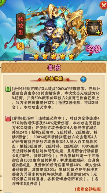 巧圣降世,百工克敌!现象级卡牌手游《少年三国志》全新彩金名将“鲁班”今日正式登场,作为首位彩金名将,鲁班拥有多重控制技能和彩金特色登场天赋,从而助力少年勇闯乱世! 彩金名将“鲁班”正式登场 首开名将登场天赋 强力控制敌军 彩金名将“鲁班”登场技能预览 历史上的鲁班又名公输般,是中国春秋时期著名的发明家,被后世尊称为巧圣仙师,百工之祖。 在游戏中,鲁班登场时可发动登场大招“穿凿”,该技能除了可对敌方造成海量的伤害外,还可清除敌方若干武将所有的增益状态,并使其陷入“百工制裁”状态,从而无法释放神意和怒气技能,且在制定回合内,行动前都可失去一定的怒气值。 此外,鲁班登场后还可启动专属于彩金名将的登场天赋,在登场护盾存在期间,大幅降低来自暗金及以下武将或名将的技能伤害,并可极大概率继承护佑武将的所有增益,从而帮助玩家在战斗中处于优势地位。 大招控制怒气 打压敌军输出 同时,鲁班还拥有强力的怒气必杀“千锤万凿”,可对敌方随机武将造成高额的伤害,并有极大概率使其陷入“崩震”状态,封印其大招的释放。另外该技能还可对敌方的若干主力武将施加傀儡标记,控制其怒气和神意值的恢复,从而极大降低敌方武将的输出。 班门之斧 克敌制胜 此外,鲁班还可在对战时释放强力神意大招,该技能除了对敌方随机3名武将造成大量元素伤害和直接伤害外,还能对敌方随机4人施加“匠神”标记。被标记的武将攻击时,伤害被大幅削弱,并损失一定的神意值,而鲁班的怒气值则增加神意大招的最终伤害加成,且在行动结束时恢复大量怒气,彼竭我盈,我方将愈战愈勇,迅速占据优势地位。 全新彩金名将今日正式登场,玩家收集到鲁班后还可通过名将并肩、图鉴养成等多种玩法,提升全体阵容的属性加成。更多精彩内容,请玩家登录游戏后亲自体验! 【联系我们】 《少年三国志》官方微信:sg_youzu 《少年三国志》官方微博:@少年三国志 《少年三国志》官方网站:sg.youzu.com |