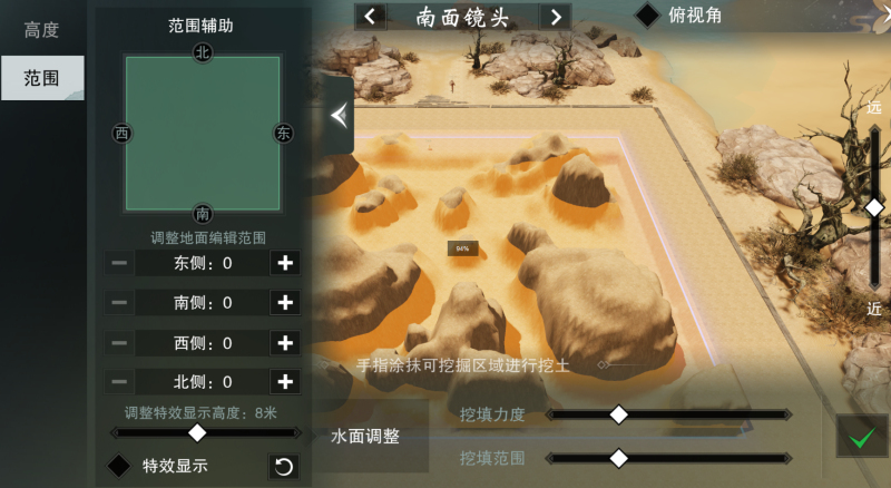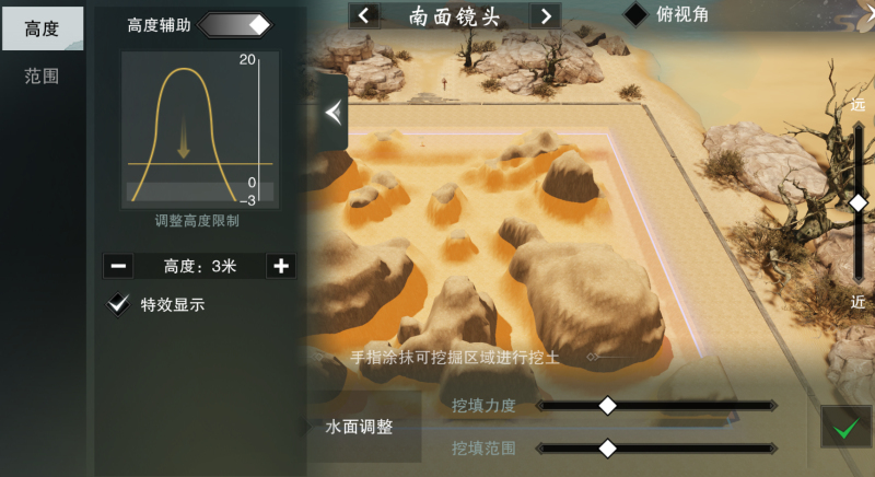 高峰入云,清流见底。《楚留香》宅邸系统将于本周上线自定义地形功能,各种地形随你创作,从此足不出户,便可将山川之美收入宅中。 【全新捏地形功能 填山挖坑随心来】 作为一款高自由度的武侠手游,《楚留香》在宅邸系统中同样尽全力为玩家打造高自由的体验感。再本次宅邸自定义地形新功能里,“堆土模式”地面编辑功能上线,只需轻松一抹即可在宅邸实现丘陵山坡。 同时,配合挖土模式与水面调整模式,更能随意捏出各种风格迥异的地形。无论是敦煌的莫高窟、新疆的魔鬼城.....只要你有大胆的想法、灵活的双手,在《楚留香》宅邸中都可实现。 【高度范围双辅助 助你更精准创作】 横看成岭侧成峰,远近高低各不同。在“堆土模式”中,除了挖填力度与挖填范围两项选择,玩家还可以通过左侧的工具箱,选择辅助功能。 在“高度辅助”中,玩家可自由调节辅助面的高度,确定所需要的地形高度;也可以选择“范围辅助”,自行调整区域范围的数值,选择需要施工的区域,更加精准捏地形的范围,进行丰富多变的创作。 【沙盒宅邸自由搭建 江湖建筑师之路开启】 倚栏静坐天暗,收尽山亭晚风。在《楚留香》宅邸玩法中,不仅可以自由创造地形环境,还有类沙盒化的搭建摆放:房屋、地面、墙体、树木花草、数百种家具可供自由布置,千人千院各不相同。 本周更新后,玩家即可在《楚留香》宅邸内体验自定义创作地形功能。江湖之大,玩法诸多,何不选择当一名江湖建筑师,实现自己的灵思妙想呢? (关注网易大神@楚留香手游 获取独家爆料和福利。) |