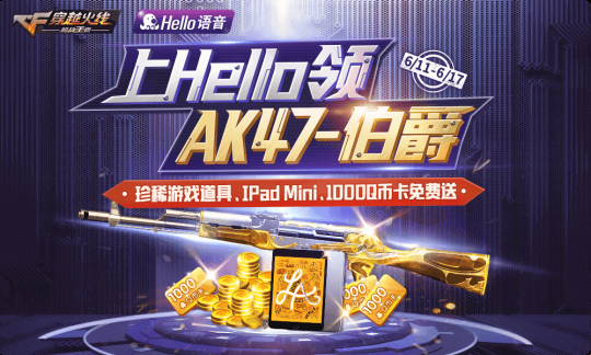 枪林弹雨,火线梦想。腾讯《穿越火线-枪战王者》官方授权,Hello语音2019年第三届第三方民间公开赛正在火热举办中,本期赛事分为职业赛和民间赛,双重赛道海量大奖,Hello语音枪王争夺战一触即发。 本次Hello语音不仅带来激烈的赛事比拼,更携CF手游放出大量福利,登录Hello语音即可领取专属礼包,完成任务更有机会获得iPad mini、千元Q币、CF手游珍稀道具等重磅惊喜! 珍稀道具放送,CF手游活动上线 1、活动时间:6月11日至6月18日 活动形式: 1)新人专属礼包:新用户注册登录Hello语音APP,进入游戏板块首页活动海报,即可免费领取新人专属礼包,先到先得。 2)CF手游活动:玩家登录Hello语音APP,进入游戏板块首页活动海报,通过完成每日任务获取积分,即可参与拼手气抽奖, 抽奖奖励每天更新。 3、活动奖励: 新人专属礼包奖励:CF手游钻石; 拼手气抽奖奖励:iPad Mini、1000Q币卡、AK47-伯爵、M4A1-青花瓷、M4A1-XS-赤龙、Hello钻石、小飞羊座驾和猕猴桃包裹礼物。 游戏开黑有奖,Hello钻石海量赠送 6月13日-6月15日,Hello语音特别举办CF手游游戏开黑送奖励活动,登录Hello语音并在Hello语音内使用游戏匹配功能开黑,即有机会获得游戏武器“巴雷特-赤龙(30天)”和海量Hello钻石。 Hello语音杯HYC赛事已经打响,火线竞技燃爆来袭,更有iPad mini、千元Q币、海量钻石等豪礼放送。更多活动详情,请关注@Hello语音官方微信公众号和官方新浪微博进行了解。 |