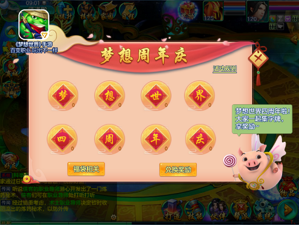 《梦想世界》手游全新内容“千机百炼”震撼上线!机关大师墨家现世,独特机制颠覆回合战斗。还有新装备、新技能、新宠物,开启全新篇章。跨平台新服“名扬四海”正式开启。周年活动开启,登录即领豪华礼包。 【推荐新服】iOS安卓跨平台新服“名扬四海” 《梦想世界》手游官网:http://mxsy.duoyi.com/ “千机百炼”专题页:https://mxsy.duoyi.com/newcont/qianji/ 《梦想世界》手游秒懂视频:https://v.qq.com/x/page/a0516wvsstm.html 名扬四海 四周年礼包上线 话不多说,直接上福利。周年庆期间6月25日0点-7月3日24点,等级≥30级的少侠只要登录即可在周年庆使者处免费领取豪华大礼包,礼包包括四周年庆蛋糕、山水玄机图、紫灵玉、头像染色券、7天头像券*2。 企鹅大作战 兽决神兽等你拿 企鹅王带领小企鹅们在雪原上玩耍,每只小企鹅代表一种奖励,击中小企鹅即可获得相应奖励。小企鹅前有保护壁垒,攻击壁垒可增加对小企鹅的命中率,增加获得奖励的几率。6月28日-7月3日,每日9点-24点,人物等级≥30级,五人组队即可参加,赶快去和企鹅愉快的玩耍吧。 梦想周年庆 开启福袋集字牌 《梦想世界》手游四周年庆期间,上线完成日常任务即可领取福袋,开启福袋获得(梦想世界四周年庆)八字祝福字牌,通过收集的字牌可兑换大奖。还有更多周年活动现已上线,快来梦想大陆感受周年庆的氛围吧! 关于《梦想世界》手游 《梦想世界》手游,趣味策略回合手游大作!百变职业,玩出不一样!快意恩仇自由PK,奇招异式耍威风;花样宠物个性养成,携华美坐骑翅膀问鼎江湖;绿色环境,轻松任务;高颜值选秀,快乐社交,梦想世界邀你踏上全新征程!更多游戏详情,请关注多益网络《梦想世界》手游官网和梦想世界手游官方微信。 《梦想世界》手游官网地址:http://mxsy.duoyi.com/ 《梦想世界》手游安卓版下载:http://mxsy.duoyi.com/a 《梦想世界》手游iOS版下载:App Store搜索“梦想世界”,或直接输入:http://mxsy.duoyi.com/i |