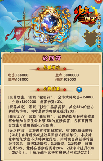 现象级手游《少年三国志》全新彩金兵符——“轮回符”和“不灭符”今日正式登场,作为游戏内首组彩金品质的兵符,它们拥有彩金符专属双技能大招,可帮助玩家在对战时迅速占据优势。 彩金符今日登震撼首发 提升伤害 控制转移 “轮回符”技能预览 (测试服截图,以线上内容为准) “轮回符”的技能“轮回之力”可大幅提升佩戴武将的怒气和神意技能的直接伤害,名将登场后前两回合所造成的伤害也将提升至1.5倍,巨量的伤害提升加强了我方阵容的输出能力。 与此同时,“轮回符”还拥有强力控制转移技能“无尽轮回”,在佩戴武将神意技能释放前,轮回符可将自身所有的减益效果转移至敌方随机单位,同时获得轮回加持效果,抵抗部分免疫,并大幅提升伤害和命中,彼竭我盈,我方将更加占据主动。 至强防御 不灭金身 “不灭符”技能预览 (测试服截图,以线上内容为准) 与“轮回符”一同登场的还有“不灭符”,该彩金兵符有着突出的生存能力,可帮助佩戴者抵消50%的所有伤害,并将抵消伤害的30%转化为治疗为我方全体回复血量(优先回复护盾),从而大幅提升我方武将的生存能力。 此外,当佩戴武将血量首次低于80%时,它可帮助武将恢复自身100%的血量并获得不灭金身效果,处于该状态中的武将每次受到的伤害不会超过最大生命值的20%,同时受到伤害后还将提升一定的攻击力和防御力(持续两回合),强力的防御特性可为佩戴武将保驾护航。 彩金符图鉴 开启提升属性 图鉴“永恒之阵” (测试服截图,以线上内容为准) 彩金兵符不仅可在对战中发挥强大作用,玩家还可通过战魂玩法,进一步提升全体阵容的属性。此外,玩家在拥有“轮回符”和“不灭符”两个彩金色兵符后,还可以在游戏中激活首个彩金兵符图鉴——“永恒之阵”,进一步提升上阵武将的属性,加强武将的生存和输出能力。《少年三国志》全新彩金兵符今日正式登场,更多精彩内容,敬请关注官方的后续资讯。 【联系我们】 《少年三国志》官方微信:sg_youzu 《少年三国志》官方微博:@少年三国志 《少年三国志》官方网站:sg.youzu.com |