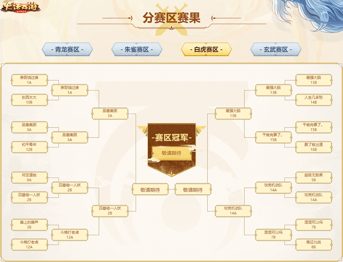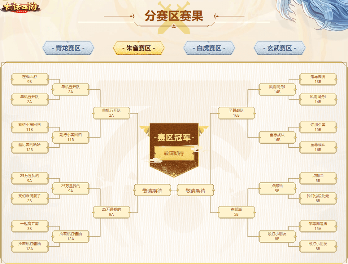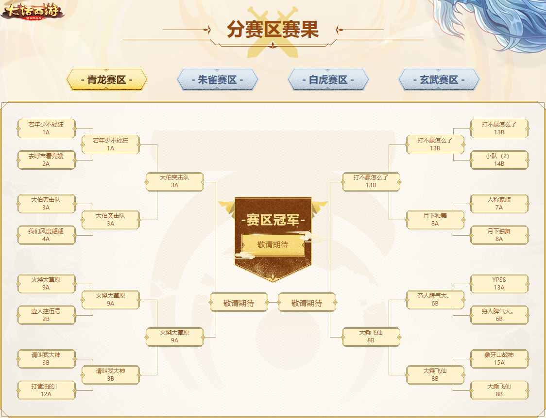 硝烟弥漫,战火雄燃!上周末,为期3天的2019《大话西游》手游“风林火山”无差别PK赛精英淘汰赛在万众瞩目之下顺利结束,朱雀、玄武、青龙、白虎四大分区四强队伍正式出炉,这16支队伍将于不久后聚首线下分区决赛现场,展开面对面的精彩对决,踏上争夺总冠军的浴血征途! 层层突围,分区四强正式出炉! 同一起点,决一雌雄。6月28日-6月30日,来自各个服务器的高手队伍齐聚一堂,经过重重厮杀,最终四大分区各四强队伍脱颖而出,他们分别是: △青龙赛区:大伯突击队(超越梦想)、打不赢怎么了(飞珠溅玉)、火烧大草原(绝代双骄)、大乘飞仙(一叶知秋) *括号内为服务器名 △朱雀赛区:单机五开队(天下归心)、至尊战队(烟雨江南)、25万是我的(风生水起)、点郎当(云漫青天) *括号内为服务器名 △白虎赛区:品惠集团(风生水起)、最强大脑(东胜神州)、四基佬一人妖(风生水起)、攻壳机动队(风华正茂) *括号内为服务器名 △玄武赛区:冠军怎么啦(鸡年大吉)、太原两日游(海纳百川)、漂亮的仙仙(朝花夕拾)、福利一队(步步高升) *括号内为服务器名 在公平竞技的同一起跑线上,这16支队伍通过制定巧妙的战术策略,在队友间的默契配合下,凭借过人的实力打出了漂亮的成绩,成功站上了分区决赛的比武擂台! 首场线下比赛本周六热血来袭 成功晋级青龙、白虎、朱雀、玄武四个赛区的这16支四强队伍,将分别受邀前往天津(7月6日,朱雀赛区决赛)、呼和浩特(7月13日,青龙赛区决赛)、福州(7月20日,白虎赛区决赛)、太原(7月27日,玄武赛区决赛)参加四大分区线下决赛,大话官方将为参加比赛的玩家们提供食宿和差旅费用,助力他们以最佳的状态投入接下来的战斗! △朱雀赛区四强对阵图 本周末,来自朱雀赛区的四强队伍单机五开队、至尊战队、25万是我的、点郎当即将齐聚天津市赛象酒店的线下比赛现场,正式拉开首场分区决赛的序幕。他们将以BO3淘汰赛的方式决出朱雀赛区的冠军,冠军队伍将在赛区决赛阶段结束后,和其他三个分区的冠军队伍一同前往大话嘉年华现场,展开最为激动人心的全国总冠军争夺战! 作为首场分区线下决赛,朱雀赛区决赛现场将以“火”为主题进行特别的布置,让所有前来现场的大话玩家们获得截然一新的观赛体验,现场准备了独具当地特色的精彩表演,更有绝美大话Coser亲临现场为参赛选手助阵!惊喜不断,决战在即,究竟谁能脱颖而出,率先夺得朱雀分区的冠军头衔,让我们拭目以待! 高手对决,一触即发。2019大话手游“风林火山”无差别PK赛精英淘汰赛阶段正式结束,四大分区各四强队伍正式出炉,本周六(7月6日)将在天津迎来朱雀赛区线下决赛,更多精彩内容,将在本周末燃情来袭,敬请期待!更多游戏、赛事信息,请关注《大话西游》手游官网、官方论坛、官方大神。 |