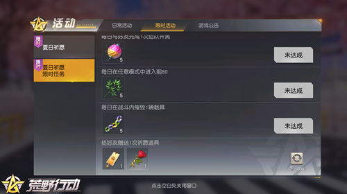 七月夏日酷热来袭,想要开启暑期生活,创造美好回忆?《荒野行动》邀你一起来许下夏日心愿!各位荒野精英可通过收集活动道具开启祈愿活动,解锁至尊军需,钻石,玫瑰等惊喜好礼,更有好友互动点赞增加亲密度!这个夏季,和你的好友一起来许下幸福心愿吧! 【收集活动道具 开启祈愿活动】 7月2日~7月4日是【道具收集阶段】,玩家们可通过完成活动任务,收集祈愿活动道具,来开启活动。活动任务道具包括小灯笼、绿竹枝和五彩纸,多余的任务道具可以赠送给好友,助力好友开启活动。 【解锁至尊军需 领取钻石玫瑰】 7月5日~7月10日期间为【祈愿阶段】,玩家们使用活动道具开启祈愿活动后,将会获得一次抽取至尊军需的机会,快来参与祈愿活动抽取你的至尊军需吧!同时,荒野精英们还可以许下自己的心愿,每日首次许愿还将获得钻石与玫瑰奖励。玩家们也可以通过查看好友愿望,点赞好友愿望来增加亲密度。 【即刻登录游戏 参与限时活动】 玩家们可以通过登录游戏界面,进入到活动界面,点击限时活动,开始参与【夏日祈愿】活动。收集祈愿道具,开启祈愿活动,更多钻石、玫瑰、至尊军需等你来领! 想为这个七月增添幸福感?那就和好友一起夏日祈愿,解锁更多愿望好礼吧!还等什么,快前往官网下载最新版《荒野行动》,一起来夏日祈愿,感受幸福吧! 上网易大神,看荒野独家爆料!网易大神是网易游戏旗下的精英游戏社区。这里汇聚了广大精英玩家、游戏圈红人、行业大咖,集合了官方资讯和福利趣闻,旨在为玩家打造一个丰富的游戏兴趣社交圈。下载网易大神,关注《荒野行动》官方账号@荒野行动,第一时间获取维护公告、游戏爆料,还有海量福利等你来领! 网易大神下载地址:ds.163.com 荒野行动官方大神号:@荒野行动 官方网站:hy.163.com 官方微信:网易荒野行动 官方微博:@荒野行动官方微博 |