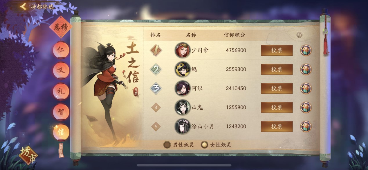 6月27日,《神都夜行录》神都妖灵妖活动终选阶段震撼上线,带来以五行命名的榜单玩法。同时邀请降妖师们从仁义礼智信五常角度对十位正在进行激烈角逐的候选妖灵做出最后的评定,甄选成为妖族代言人的最佳人选。 五榜齐出 十强决一胜负 在神都妖灵妖终选阶段中,游戏将根据木之仁、金之义、火之礼、水之智、土之信5个榜单的不同排名综合统计得出总榜。每个单一榜单的第1名积5分,第2名积4分,第3名积3分,第4名积2分,第5名积1分。而在总榜男女排名前三的妖灵视作最终晋级妖灵,并获得降妖司为其定制的终选皮肤奖励。男女状元妖灵更将分别获得终选特典皮肤,男女榜眼与探花妖灵也会分别获得终选染色皮肤。 仁义之情 宝物馈赠妖灵 在木之仁榜中,降妖师可通过每日刷新的木之仁投票机会,选择一名终选妖灵进行投票。值得注意的是木之仁投票可以产生暴击,根据暴击数值的不同,降妖师们还可以获得紫色礼物礼盒、青团、青团食盒、玉璧等奖励。 而在金之义榜中,妖灵不再拒收礼物,降妖师可以通过情义赠礼功能向终选入围的十个妖灵赠送礼物,借此获取情义值与情义积分,情义值与情义积分的比例为1:1。到了投票时候,如果降妖师与妖灵的情义阶段已到达情义值上限,则投票所获得的情义值保持不变,情义积分将获得50%的额外加成。 五常积分 解锁海量奖励 火之礼榜是副本投票榜单,当降妖师们攻略“五行修炼”、“琉璃幻境”、“妖魄蜃境”、“妖气净化”以及指定“金风玉雨鱼龙夜”活动副本后,将会随机获得“尚礼票”,利用其每投1票获取1点尚礼积分。 而当降妖师攻略从极之渊副本,则是随机获得“灵智票”,其中1-10层额外首通奖励为每层各1张,11-20层额外首通奖励为每层各2张,21-30层额外首通奖励为每层各3张,31-34层额外首通奖励为每层各4张,35层额外首通奖励为5张,利用其每投1票可获取100点灵智积分。 当降妖师们花费1玉璧投票,可获得50点信仰积分与1张信仰票。使用信仰票可以在神都终选坊市种兑换珍贵道具奖励。与此同时,每个终选妖灵的全服信仰积分达到相应数量时即可领取包括青团、青团食盒、玉璧、剧情SSR碎片任选礼包、唤灵符在内的海量福利。 《神都夜行录》神都妖灵妖终选阶段现已上线,请降妖师们务必甄选出仁义礼智信具备的妖族代言人! 【神都夜行录】 国韵之美,归于盛唐。网易新概念妖灵手游《神都夜行录》是一款国风妖怪收集RPG手游!在游戏中,你可以奇遇万千妖灵,体验绝美百妖剧情!盛世大唐,国韵美学,让你亲历神都风志!每有妖物作乱之日,便是降妖师现身之时,让我们一起走进国风妖怪的世界! 《神都夜行录》官网:http://sd.163.com/ 《神都夜行录》微信公众号:神都夜行录 《神都夜行录》官方微博:神都夜行录 《神都夜行录》官方抖音号:神都夜行录降妖司 《神都夜行录》官方贴吧:神都夜行录 《神都夜行录》网易大神:神都夜行录 |