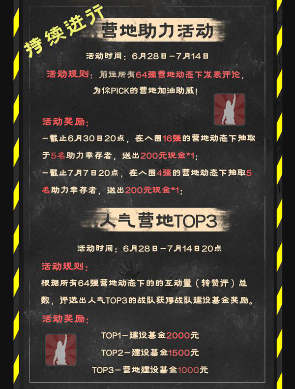 网易大神《明日之后》圈子又有新一轮福利活动了!“末日挑战”活动再启,完成搭讪大挑战,就有机会将现金好礼带回家;在“幸存者精英挑战赛”如火如荼进行之际,赛果预测活动同步开启。为你喜欢的营地呐喊助威或成功预测赛事结果,都有机会获奖,现金、银光落刃套装、鎏金暗影套装等丰厚礼品等你来拿。 【末日挑战再启 轻松拿现金大奖】 人生相逢即是缘,更何况是在末世之中,遇见了就要勇敢一点,把ta留下来!网易大神《明日之后》圈子第二期末日挑战现已开启,“搭讪大挑战”等你来参加。只要在游戏内向陌生人搭讪并得到对方的正向回应,即视为挑战成功;带话题#末日挑战#发布动态,晒出自己挑战成功的图片或视频,就有机会获得现金及限定头像框奖励! 在挑战过程中遇到有趣的事情,也可以到大神分享给大家,投稿互动量越高、挑战完成度越高,获奖的几率就越大哟~ 活动入口:https://ds.163.com/webapp/share/topic?topicName=%E6%9C%AB%E6%97%A5%E6%8C%91%E6%88%98 不知道要怎样完成任务?来看看往期末世挑战集锦参考一下吧:https://ds.163.com/webapp/share/users/cce02eaab4e547b1bdcdcd3e451cdaeb/details/5d0a0ab07c8722184e3a30bc 【呐喊助力挑战赛 预测结果赢好礼】 幸存者精英挑战赛如火如荼进行中,营地之间的对抗精彩纷呈,让我们先来感受一下吧:https://ds.163.com/webapp/share/users/cce02eaab4e547b1bdcdcd3e451cdaeb/details/5d1616eb7c8722184e48deb1 经过激烈的角逐,精英挑战赛十六强现已诞生,四强预测活动同步开启。7月1日至7月7日20:00,到网易大神《明日之后》圈子找到@明日之后补给站 发布的活动动态,在动态评论区中发表你对赛果的预测,即可参与活动。所有参与活动的幸存者都有机会获得现金、幸存者套装等的丰厚奖励。 活动入口:https://ds.163.com/webapp/share/users/952edce2472c495980fe019ff60fd316/details/5d19e787517f0f577ccdd9f8 下一阶段的冠亚季军预测活动将于7月13日开启,大家千万不要错过哦。另外,营地主力活动和人气营地TOP3活动也在持续进行中,赶快去给自己喜爱的营地打call吧!具体活动详情,可见网易大神@明日之后补给站 发布的相关活动动态。 更多《明日之后》相关精彩内容与福利活动,尽在网易大神,赶紧去看看吧! 【关于“网易大神”】 网易大神是游戏玩家专属的兴趣社区。这里汇聚了广大精英玩家、游戏圈红人、行业大咖,集合了网易独家的官方资讯和福利趣闻,旨在为玩家打造一个丰富的游戏兴趣社交圈。玩家可以在网易大神与游戏中的好友实时聊天、多元互动、以游戏会友,结交更多游戏同好,和大神一起发现更多游戏乐趣。 官方网站:https://ds.163.com 官方微信:wyds_163 官方微博:@网易大神APP 官方大神号:@网易大神 |