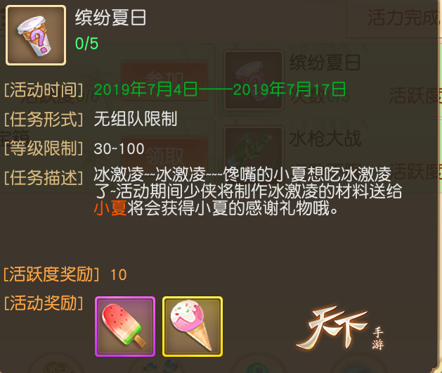 《天下》手游水上乐园狂欢活动之——“夏日泳赛”&“水枪大战”即日起抢滩登陆大荒。更有“缤纷夏日”活动全程免费赠送冰激凌、甜筒等美味小食。海量金币、经验、雷钻、圣灵软玉、仲夏系列头像框、聊天框……开园壕礼惊喜不断。这个七月,来《天下》手游清凉“浪”起来! 【“水中飞人”惊现大荒!“夏日泳赛”纪录刷新就靠你了!】 传说中每逢盛夏,《天下》手游就会涌现出一大批解锁游泳天赋的神奇少侠。他们成群结队出现在江南地区“夏日泳赛”的活动现场,为刷新泳赛时长记录而努力奋斗!本届“夏日泳赛”将为所有参赛少侠提供单人、组队两种参赛模式。同时,赛道上随机刷新各种增益道具,触碰后即可获得金币、经验等丰厚奖励,更有机会进入加速冲刺状态直奔终点而去!那浪里白条的伟岸英姿,实在是太迷人辣。 【这水枪,将打败一切!全新夏日“水枪大战”玩出你花样!】 手中有枪,心中不慌!《天下》手游全新夏日版本吃鸡活动“水枪大战”已经等不及要看你超神啦。活动期间,场景内吃鸡装备全部换新为水枪、水蛋炸弹等趣味道具,使用后就能打出满屏水花的酷炫效果,降暑清凉一级棒!穿着泳装的少侠还将额外获得加速效果,跑起图来超任性der! 【吃不完的冰激凌和甜筒不要扔!隔壁的小夏都馋哭了!】 听说有人吃不完冰淇淋和甜筒?快拿来换雷钻鸭!即日起,少侠前往《天下》手游“缤纷夏日”活动专属NPC“小夏”处,提交日常活动掉落的冰激淋原材料,就能品尝到独家秘制版“水果雪糕”与“缤纷超级甜筒”!拿到声望商城处还可以兑换包括“仲夏头像框”、“仲夏聊天框”、雷音溟钻等珍稀道具在内的丰富活动奖励哦。 【7月4日!《天下》手游全新“一笑倾城”服务器准时开启!】 《天下》手游傲世华夏大区7月4日新服再开!全新“一笑倾城”全平台数据互通服务器,于7月4日上午11点盛大开启。30级免费赠送“萌新礼”,绝美坐骑“蒲公英”体验符、师门传承时装等珍稀道具奖励唾手可得!更有活动期间每人每天可领取20次的“势力福袋”、内含月威溟钻,圣灵软玉,特殊称谓等成长奖励的“亲友团秘宝”、 冲级&冲榜专享时装宝箱、技能书残页等四大感恩回馈福利活动,只等少侠前来探索!我们在“一笑倾城”与你不见不散! 更多《天下》手游仲夏欢乐活动,请继续关注我们! 官方网站:https://tx.163.com 官方微博:https://weibo.com/wytxsy 官方论坛:http://tx.16163.com 官方微信公众号:天下手游 官方网易大神号:@天下手游 官方抖音号:@网易天下手游 |