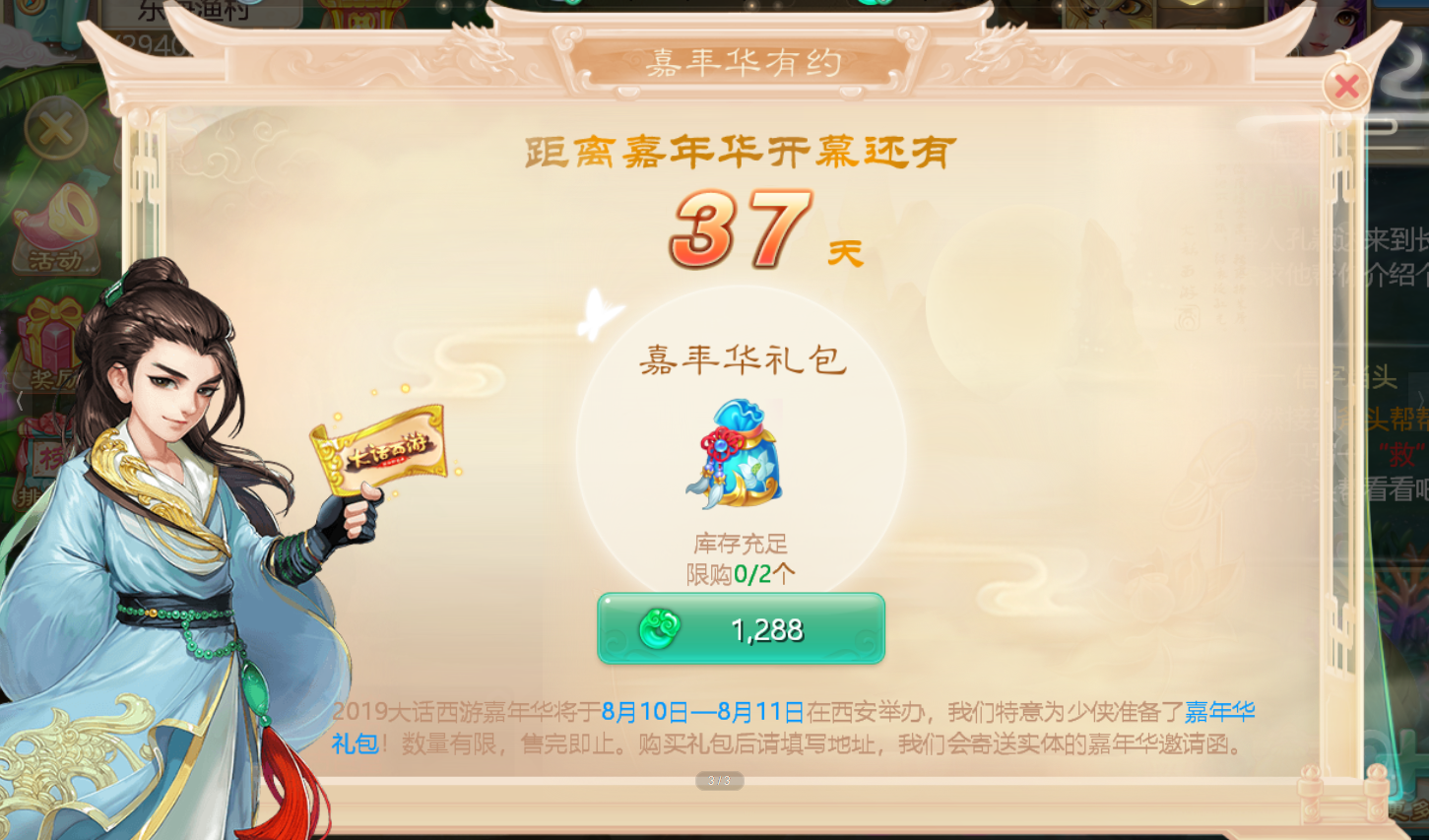四海兄弟聚首长安,携手共庆嘉年盛会。2019大话嘉年华之超级庆典将于8月10日-8月11日在西安诗经里隆重开启,门票今日正式开售!届时,三界侠士们将欢聚线下,在千年古都西安参与这场夏日最精彩的庆典,赶快购票参与这场大话玩家专属的盛会吧! 大话嘉年华之超级庆典官网专题:https://dhxy.163.com/2019/party/ 共襄盛举!大话嘉年华门票今日开售 8月10日-8月11日,2019大话嘉年华之超级庆典将以“龙吟东方,欢聚长安”为主题在西安诗经里景区内盛大开启,大话将以诚意十足的姿态,邀请来自五湖四海的玩家们共同前来欢度盛会,一起书写今夏最为难忘的回忆! 今天(7月4日)12点35分-7月7日0点,首批嘉年华门票正式开售,售价为1288仙玉,希望前往现场参与嘉年华盛会的玩家们,请尽早购买门票。 此次嘉年华门票为双日多次券,每个持有入场券的玩家可以活动期间进入嘉年华现场参与活动。本届嘉年华定址于西安诗经里景区内(地址:陕西省西安市沣东新城沣河东路818号),其中大话西游嘉年华区域为封闭式区域,活动当天,成功购买门票的玩家可凭入场券在景区入口处签到,兑换大话玩家身份凭证后方可畅游大话嘉年华!同时,凭门票还可在首次入园时领取包含大话周边、线下游玩代币的游园礼包,门票副券更可参与8月10日的抽奖活动,请大家妥善保存,不要错失抽奖机会哦! 豪华游园礼包相赠,丰富活动乐不停! 作为大话玩家们最为期待的年度盛事,除了一如以往的精彩表演、趣味互动内容之外,大话精心筹备的游园会将为所有来到现场的玩家们带来童趣十足的参与体验。 玩家入园时所获得的游园礼包中,不仅包含颜值与实用并存的大话定制国风单肩背包,手持电风扇和折叠晴雨伞,还将附赠一件独具特色的种族T恤。届时,玩家们可以通过游园手册了解每个游园活动的位置和简介,并使用游戏代币参加园内游戏,赢取周边兑换券,兑换稀有周边! 除了游园活动之外,玩家们还能在嘉年华举办期间参与大话西游年度发布会,第一时间了解游戏最新爆料,更能观战大话手游无差别PK赛总冠军决赛,亲眼见证武林王者的诞生! 2019大话西游国风嘉年华Q&A Q:今年的大话西游国风嘉年华是什么时候? A:2019年8月10日——8月11日(每天上午10:00开场)。 Q:今年嘉年华的举办地点在哪? A:今年的嘉年华,大话将来到古城西安的诗经里。地址:陕西省西安市沣东新城沣河东路818号。 Q:本次活是否提供交通接送? A:我们将安排地铁站(地铁:四号线鱼化寨站)至嘉年华活动现场的接送服务。 Q:门票入场后是否还有其他作用? A:门票副券将可以用于8月10日抽奖活动,请玩家妥善保管;损坏、丢失一律不予补发。 Q:大话嘉年华要如何入场? A:各位玩家可以进入游戏进行门票的购买,7月4日起游戏内将进行嘉年华门票的售卖,每张门票1288仙玉。大话官网、微信公众号以及论坛也将上线免费获得门票的福利活动,不要过错哦! Q:游戏内购买门票后,如何获得实体门票? A:游戏内购买后,我们会将线下嘉年华门票通过邮寄的方式寄送至您确认的地址。 Q:门票是否能够多次使用? A:门票为双日多次券。每次持有门票的玩家可以在8月10日和8月11日进入嘉年华现场进行游园,还可以在嘉年华会场签到处领取游园礼包一个。(每张入场券只能在首次入园时领取一个游园礼包) Q:需要带什么凭证到现场?怎样才能领取2019大话西游国风嘉年华线下大礼包? A:入场券门票是领取嘉年华礼包的唯一凭证,请玩家务必携带门票至现场。 Q:我若有事无法参加本次嘉年华,可以将门票转让给朋友吗? A:您可以将门票转给和您一样热爱大话的朋友。 Q:能否带亲友和孩子进入嘉年华现场? A:每名玩家都可以凭门票携带一名身高1.2米以下的儿童入场,不能携带成年人入场。 Q:我可以带食物和水入场吗?可以带宠物进去吗? A:可以带食物以及水进场,但不可以带宠物,敬请谅解。 Q:本次活动是否会提供餐饮服务? A:游园礼包内配有饮用水。景区内设置有商家餐饮售卖,需要自费购买。 Q:如何了解更多的活动信息? A:请随时关注我们的官网、官方论坛、微信公众号,获取嘉年华的一手信息。 |