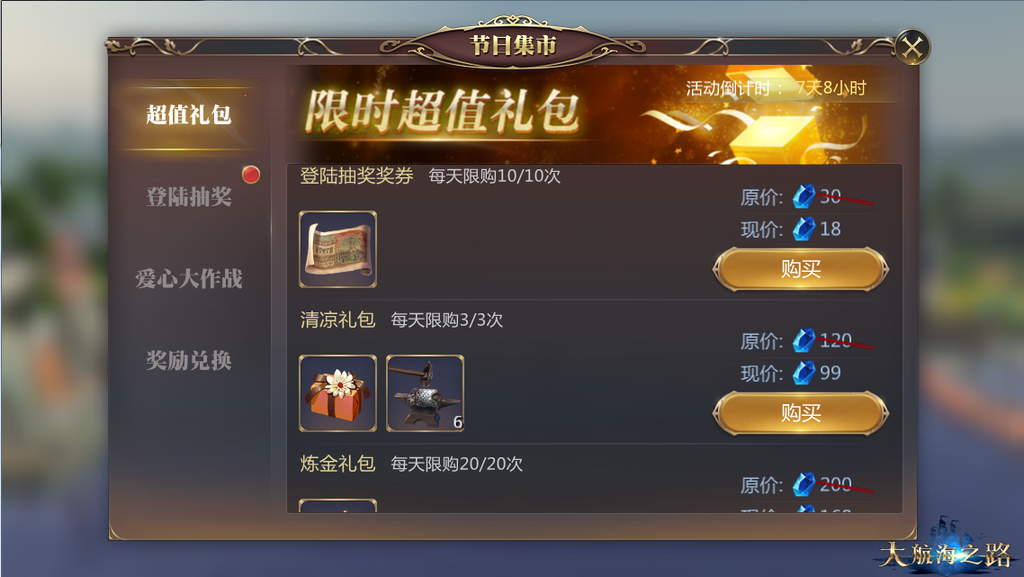 炎炎夏日,大航海的世界里,商人和战士依然繁忙。为给在夏日中忙碌的他们,带去一些惊喜,《大航海之路》暑期清凉活动正式开启!7月24日-7月30日24:00活动期间,船长每日登陆游戏,即有机会抽取珍贵游戏道具,参与爱心大作战活动,为心爱的酒吧招待赠送心意好礼,还有机会获得排名奖励,更有超值礼包换购,以及奖励兑换活动等你来体验! 奖券超值礼包 享专属折扣 活动期间,船长购买登陆抽奖券和达芬奇体验礼包、达芬奇高手礼包、达芬奇豪华礼包、6级船只装备礼包等超值商品,可享限时折扣福利!其中包括内含暑期庆典礼盒的全新清凉礼包,打开礼盒后,可能获得4-6级船只装备、珍宝、高级吧女礼物、蓝鲸之沁等珍贵道具,优惠钜献,欲购从速! 登陆抽奖 赢高级船装船只主题 除了超值礼包,暑期清凉活动期间,船长每天登陆游戏,还可免费获得活动奖券,有机会抽到包含高等级船装、限定船只主题等在内的丰厚专属奖励! 为吧女送心意 赢丰厚排名奖励 不仅如此,船长还可以给喜欢的酒吧招待赠送礼物,提升ta的人气,船长们自己也可以累积贡献,在贡献榜榜单排行前列的玩家,还有机会获得丰厚的排名奖励,贡献榜排名第一名将获得限时专属称号奖励,快来给招待们赠送礼物,争夺这份独一无二的荣誉吧! 与此同时,活动期间船长还可通过提升活跃度、使用达芬奇探测器、击败游掠海盗船等方式积攒节日奖章,兑换丰厚游戏道具奖励。后续游戏还将陆续为船长带来更多福利活动、玩法。更多游戏内容,请关注《大航海之路》官网、官方论坛。 此外,网易和电信合作推出网易白金卡,玩游戏,听音乐,流量统统免费(包括网易所有产品),高铁玩游戏不掉线!惊喜多多,赶紧来体验吧! (PC端官网地址:https://bjk.163.com/) (移动端地址: https://red.163.com/hongka/hongka.html?cmpid=null&shopid=null#music_tk) |