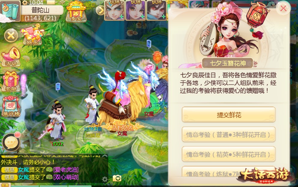 七夕今宵看碧霄,牵牛织女渡河桥。又到一年一度乞巧节,《大话西游》手游也为三界侠士们带来了充满诗意的七夕专题节日活动!七夕花神降临,为大家带来爱的馈赠,更有“七夕之恋”告白专属定制道具上架杂货铺,为大家献上最具诚意的浓情之礼,愿天下有情人终成眷属!! 花神降临!大话七夕主题活动即将开启 几许欢情与离恨,年年并在此宵中。七夕是我国的传统佳节,人们这一天祈福许愿、乞求巧艺,希望能够获得美好姻缘,与有情人相知相守。适逢七夕时节,七夕花神也降临三界,将在大话游戏中为侠士们带来浪漫十足的专题活动,和大家一同度过这个一年一度的良辰吉日。 8月7号5:00-8月8号5:00,在七夕当天,花神将降临大话,所有大话玩家将会自动收到七夕任务,前往普陀山寻找花神,并接受花神的挑战,就能够赢取爱的馈赠。 爱意蔓延,花满大地。接受了花神任务之后,玩家需要两人组队接受爱的考验,前往三界各地收集不同品种的鲜花,并返回花神处提交。根据提交的鲜花种类,可开启普通、精英、炼狱三种不同难度的挑战,此外还有隐藏任务可以触发,有自信的侠士们可以尝试一下哦! 在成功挑战任务后,玩家将会获得花神的心意馈赠,点击使用后,将赢取浪漫好礼!同时成功接受考验的双方,还将根据成功挑战的任务难度获得300-1000不等的好友度。 七夕之恋,梦幻告白!海量福利限时降临 两情相悦,共谱恋曲!在七夕佳节当天,七夕之恋道具将在杂货铺限时上架,仅此一天,敬请珍惜!使用七夕之恋道具之后,玩家可以开启梦幻告白,全世界玩家都将共同见证你们的浓情时刻! 除了以上活动内容之外,花神还为三界爱侣带来天降福利,赐与有情人真爱折扣之礼。玩家在七夕当天结婚、举办婚宴和购买时装都将获得限时折扣,七夕当天结婚还将获得紫色永久称谓,将这个良辰吉日深深铭记!快和你心爱的人一同度过这个美好的节日吧! 鹊桥相会,情满江湖。七夕当天花神降临,接受爱的考验即可赢取各种馈赠,更有各种七夕限时福利,等待大家前来体验! 此外,8月8日大话全新种族龙族即将全面上线,先锋局测范围继续扩大,龙族神威即将降临三界,快来第一时间体验全新的游戏内容吧!更多游戏、赛事信息,请关注《大话西游》手游官网、官方论坛、官方大神。 |
