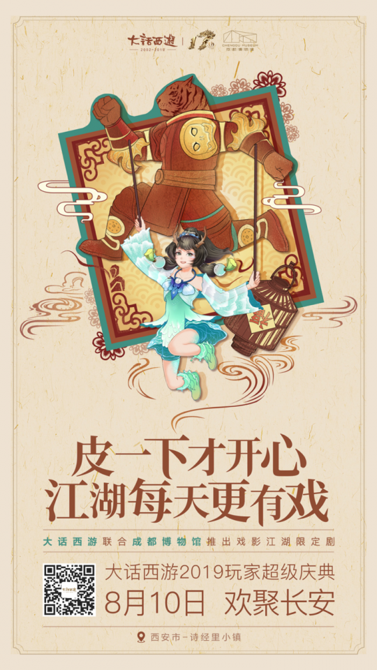 导读:大话西游嘉年华超级庆典明日揭幕,惊喜小龙女杨超越、嘉年华博物馆系列合作邀你共赏国风之美! 2019大话西游嘉年华超级庆典明日即将在古都西安诗经里隆重举行!今日,博物馆系列海报曝光,龙族角色与汉字、皮影等传统文化元素的碰撞,呈现出浓郁的国风韵味,大话邀你一起共赏国风! 携手博物馆 大话邀你共赏国风 汉字作为中华文化的载体,已悠悠传承数千年。大话携手西安碑林博物馆以“中国书法”为载体,开启“汉字复兴”计划,则是希望大家能在横折撇捺之间感受千年书法之美。 成都博物馆的合作,大话则聚焦于传统皮影艺术。我们用皮影制作了熟悉的大话角色,推出戏影江湖限定剧,演绎大话江湖的情义篇章。让大家从传统艺术形式中,感受到大话国风的独特魅力。 携手敦煌博物院,大话还将开展全新合作。融合传统文化经典的全新互动玩法将隆重上线,再一次带大家感受盛世汉唐的古韵,让人仿佛穿越千年时光,为中华悠远流长的文化而倍感骄傲! 而本次嘉年华超级庆典的选址地古城长安,是大话江湖故事开始的地方。将嘉年华选址在西安诗经里,是我们希望与大家共同领略“琴棋书画诗酒花茶”等国风之雅,也是大话十七年国风情义的再一次传承。 弘扬经典 带你感受文化魅力 嘉年华这四幅国风海报,除了赏心悦目、别具风味之外,更代表了大话一直以来坚持国风传承的匠心。大话西游的根骨一直是中国风,以国创经典IP为载体,让大家能够从游戏中感受到传统文化的魅力。 倒计时一天,嘉年华超级庆典将临,惊喜小龙女杨超越邀你在博物馆系列合作中共赏古韵国风,带你感受传统文化之美! 点击链接可观看嘉年华超级庆典全程直播,十二时辰好礼拿不停! (直播地址:https://game.163.com/chuanbo/dhxy_twelve/) |