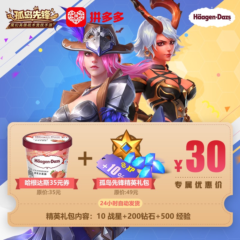 炎炎夏日,骄阳肆虐,闷热的天气令人不敢出门。此时,你需要透心凉的冰激凌和反套路的战术竞技手游给你最畅快的夏日体验!网易首款魔幻多英雄战术竞技手游《孤岛先锋》携手拼多多和哈根达斯,为你奉上盛夏特惠,超值福利,清凉美味,超帅时装一网打尽! 够畅爽,更甜蜜! 8月13日0点至8月14日23点59分,《孤岛先锋》携手拼多多奉上夏日特惠——3折购买《孤岛先锋》礼包+哈根达斯券,打开拼多多App,下单即可享受超值优惠! 活动提供三款套餐供用户选择:哈根达斯35元券+价值49元的孤岛先锋精英礼包,仅需30元;哈根达斯50元券+孤岛先锋99元豪华礼包,仅售43元;哈根达斯100元券+原价149元的孤岛先锋至尊礼包,只需80元! 活动抢购地址:https://mobile.yangkeduo.com/promotion_op.html?type=20&id=40989 《孤岛先锋》49元精英礼包内含10战星+200钻石+500经验,一路领先,精彩无限;99元豪华礼包内含河豚皮肤3天+七海霸主皮肤7天+200钻石,霸气尽显,帅气威武;149元至尊礼包则包含密林游侠皮肤3天+暗影舞者皮肤7天+500钻石,千姿百媚,异域风情! 够诚意,更惊喜 盛夏清凉加竞技热情,三折价格即可拿下,你是否已经感受到了《孤岛先锋》与拼多多的诚意?别急,还有惊喜! 活动期间,前100名购买哈根达斯50元券+孤岛先锋99元豪华礼包的用户,还将免费获得永久英雄“密林游侠”,带你领略罗宾汉的侠义与犀利;前100名购买哈根达斯100元券+孤岛先锋149元至尊礼包的用户则可获赠永久英雄“密林游侠”和西部牛仔永久皮肤! 够激烈,更颠覆 《孤岛先锋》是网易首款魔幻多英雄战术竞技手游,在保持战术竞技手游核心玩法的基础上,大胆创新,呈现了颠覆式的竞技玩法和游戏体验。 在对决中,玩家可以从六大英雄中择一参战,每位英雄都拥有独特的专属武器和技能体系,定位不同,玩法各异,趣味多多。英雄随身携带恐龙坐骑,可以用更快的速度搜寻更大区域内的资源和敌人,无需再为载具耗费时间,单刀直入尽享战斗乐趣;游戏采用多重淘汰制,被淘汰后将变身为可爱的小恐龙,只要坚持25秒内不再次被淘汰,即可半血复活,队友也可以收集复活精元助你满血复活,每局三次复活机会,胜负归属更具悬念。还有秘宝系统、圣堂祈愿等特色玩法,将给予你更丰富的游戏体验! 网易首款魔幻多英雄战术竞技手游《孤岛先锋》携手拼多多为你奉上夏日特惠!即刻登录游戏官网,查看更多活动资讯! 游戏官网:http://gd.163.com/ 官方微信::网易孤岛先锋(wygdxfsy) 官方微博:https://weibo.com/u/6391626461 关于《孤岛先锋》: 《孤岛先锋》 首创多英雄魔幻战术竞技玩法,六大首发英雄,技能自由搭配,隐身、突进、控制、伤害无所不能!全新魔幻世界,多种族地形植被;圣堂祈祷系统,装备助你火力全开;随身恐龙坐骑,一键召唤策马奔腾;双重复活机制,淘汰化身小萌龙,坚持就能原地复活!魔性趣味玩法,紧张刺激惊喜不断! |