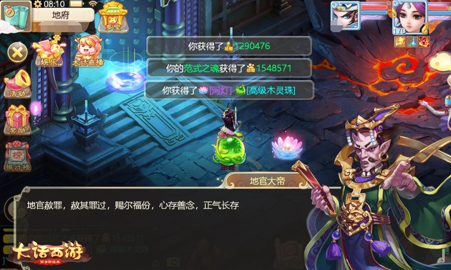 上界秋光净,中元夜气清。人们通常会在这一天悼念先人,寄托思念,《大话西游》手游也为三界侠士们准备了中元节主题活动,大家可以在活动当天参与相关任务玩法,祭祖祈福,参与活动就有机会获得经验奖励、牛头、马面、聚魄丹、五行材料、神兽属性卡等各种丰富道具奖励哦! 地官赦罪,祭奠亡灵缅怀先祖 农历七月十五是中国传统节日中元节,它与除夕、清明节、重阳节三节是中国传统的祭祖大节,人们会办法会祭祀亡灵,听闻地官还将在这一天释厄赦免先祖亡魂之罪。 8月15日5:00-8月16日5点,大话手游中将开展“地官赦罪”中元节主题活动,等级≥0转35级的玩家可以参与该玩法。节日当天,福星处会送给玩家“中元经帖,玩家需要手持“中元经帖”,接受各路人士的委托,前去地府,请求地官大帝赦免先祖亡魂之罪。成功完成任务的玩家将能够获得经验、聚魄丹、1级五行材料、高级技能书残卷、神兽属性卡等奖励! 夜放河灯,悼念逝者祝福世人 幽幽长夜凉如水,静放河灯寄哀思。8月15日5:00-8月16日5点期间,等级≥0转35级的玩家可以参与“放河灯”玩法,玩家通过完成“地官赦罪”任务可获得2盏河灯,在中元节之夜将河灯放入水中,可悼念逝者,并祝福在世之人!需要注意的是,19点-24点放河灯的奖励更多,大家可以选择该时段前往参与活动哦! 完成“放河灯”玩法不仅能获得经验奖励,更有机会获得牛头、马面、聚魄丹、2级五行材料、终极技能书残卷、神兽属性卡、神兽变身卡等丰富的活动奖励,记得准时前往游戏内领取河灯参与活动哦! 四孟逢秋序,三元得气中。本周四(8月15日)更新后,大话手游中元节主题活动即将在游戏内举行,玩家可参与“地官赦罪”和“放河灯”两大玩法,祭奠先祖亡灵,祝福在世众人,更有机会获得经验奖励以及牛头、马面、聚魄丹、五行材料、神兽属性卡等各种游戏道具哦!点点河灯寄哀思,快来参与活动领取奖励吧!更多游戏、赛事信息,请关注《大话西游》手游官网、官方论坛、官方大神。 |