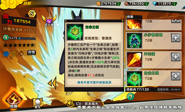 对于小编来说,《龙珠Z》最能给我感触的场景,莫过于悟饭对决最强人造人沙鲁,发动亲子龟派气功的画面了。面对当时最强战斗力的沙鲁,悟饭继承了悟空的意志,与贝吉塔共同打败了他。在原作设定中,自爆后再次复活的沙鲁确实是当时最强的个体,无愧“最强人造人”的绰号,只不过孤身一人的沙鲁最后还是被一众Z战士合力击败。今年《龙珠Z》的最新手游、强调合作战斗的《龙珠觉醒》便传达了“寡不敌众”这一概念,多人乱斗玩法十分有新意,同时沙鲁也有在这个游戏里登场,在团队合作的衬托下,再次凸显了最强人造人的实力。 沙鲁在《龙珠觉醒》里是S稀有度的角色之一,作为结合了《龙珠Z》几大高手细胞的生物,他与历代BOSS一样都拥有顶级资质,实力非常强劲。沙鲁在游戏中是后排远程输出的位置,当前排有近战角色存在时,就能很好地发挥实力了。他的招数特色主要依靠核心技能“小沙鲁召唤”,小沙鲁有一定的攻击力和血量,而且不会被敌方锁定,能够安逸输出,本体的其他几个技能都会与小沙鲁连携发动,也就是说,小沙鲁在场上的数量越多,沙鲁的输出就越高,所以布阵的时候一定要有足够的前排单位帮沙鲁挡枪,保证他召唤足够的小沙鲁进行输出。 除了与他人不同的输出机制外,沙鲁的觉醒技也很有特色,其他角色的觉醒技大多是强化某个技能,而沙鲁的觉醒技则是强化小沙鲁的能力,令其能与本体同时使用怒气技“龟派气功”,快速击杀敌方的后排单位,面对后排单位较多的队伍时,能起到非常大的作用。沙鲁最厉害的地方在于8阶时解锁的技能“生命之核”,能让他起死回生并变得更强,完美还原原作场景。 如此一个忠实还原的作品,你是否心动了呢?现在前往各大平台搜索“龙珠觉醒”即可下载进入《龙珠Z》的世界开始冒险!唤醒你的童年回忆,与悟空、贝吉塔等Z战士一起守卫地球吧! |