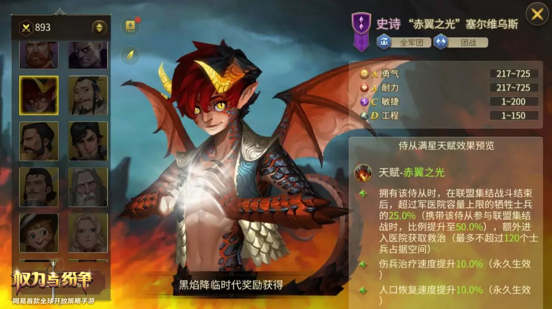 出征堕龙,巨龙传说时代启幕!网易首款全球开放策略手游《权力与纷争》全新时代“巨龙传说”强势来袭,法维拉大陆将再次迎来翻天覆地的巨变,英勇的领主们将携手迎接更为艰巨的挑战!黑焰降临时代已正式成为过去,在上一个时代里获得显著功勋的领主们也将迎来自己最为荣耀的奖励,让我们一起来看看令人血脉喷张的全新城堡皮肤“黑暗主君”吧! 专题链接:https://qlyfz.163.com/2019/jlcs/ 黑焰终结!国王领主专属皮肤亮相! 在“巨龙传说”时代来临之前,鉴于每个联盟与各位领主在“黑焰降临”阶段的出色表现,领主们将获得最为豪华的表彰奖励,助力他们顺利应对全新时代的挑战。其中,顺利攻下王城首都帕兰尼亚,并取得国王官位的领主将获得法维拉大陆最为尊贵的国王奖励,——全新国王专属城堡皮肤“黑暗主君”! 暗夜降临,万籁俱寂,一座漆黑又神秘的钢铁城堡静谧地矗立在这片焦土之上,幽幽的紫色灯火透过窗户散发出神秘的光……全新国王皮肤“暗夜主君”的外观相当符合它的名字。这款皮肤具备着十分强力的增益效果,除了能永久提升所有兵种攻击力和生命力,使用城堡皮肤之后还能额外令所有兵种攻击力增加15%、出征士兵上限加10。相信这一款全新皮肤定能成为强力辅助,帮助获得它的领主们在全新时代的战斗中更加所向披靡! 新侍从登场!超强回复助力战斗续航 除了超豪华的国王奖励,其他为驱逐黑焰势力做出贡献的领主也会获得相应的奖励,除了珍稀神秘地图、研究加速、建造加速等游戏道具之外,更有机会获得全新登场的传奇侍从——“赤翼之光”塞尔维乌斯! “赤翼之光”塞尔维乌斯是一位能够抵御黑暗的传说级侍从,他出身火龙一族,超强天赋“赤翼之光”在满激活之后更将成为所有领主们对战堕落巨龙的超强助力!值得一提的是,只需要拥有该侍从,领主们就能获得他的超强助益,不仅能够扩充军医院容量上限,在联盟集结战斗结束后,提升进入医院获取救治的士兵人数上限,在携带该侍从参与联盟集结战时,塞尔维乌斯的这一效果还将翻倍,此外,他更能永久提升伤兵治疗速度和人口恢复速度,可想而知,在与堕落巨龙们苦战的过程中,拥有这样一位强力侍从将对领主们带来多大的帮助! 堕落巨龙盘旋,法维拉迎来全新征程!黑焰时代已经过去,巨龙传说时代正式启幕,地狱之王萨迈尔携堕落巨龙一族卷土重来,带来的不仅仅是恶劣的气候、面目全非的地貌,更是前所未有的巨大挑战,请领主们再度集结,去征服这些手握黑暗之力的强敌!苏醒吧,勇士们的战斗之魂!关于游戏的更多玩法、更多精彩内容,请关注相关后续报道。 【关于《权力与纷争》】 《权力与纷争》是网易首款全球开放策略手游。游戏共有五大类型、四十余种不同建筑,玩家可在自己的领地中,精确规划资源实现最大化利用,发展农业、工业、军事,提升城市实力,抵御外敌入侵。游戏内有金钱帝国、工业巨擘与战争之王三大派系,各大派系天赋不同,给予玩家更多个性化发展空间,不同派系玩家也可通过合作共同提升实力。游戏中有丰富完善的贸易系统,玩家可凭借自己的商业能力低买高卖,上演逆袭。游戏中更有联盟竞赛与战争,及后期将要开启的跨服战和跨国战等多种战斗玩法,玩家可与真人斗智斗勇,享受策略战斗的快感。 官方网站:http://qlyfz.163.com/ 官方微博:https://weibo.com/qlyfz 官方微信:qlyfz163 |