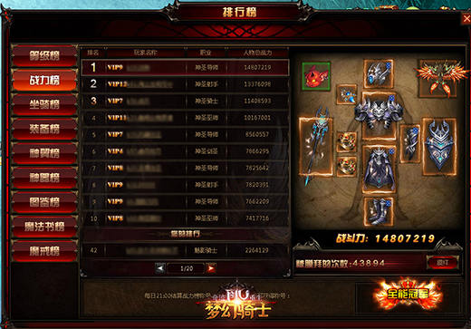 随着你对塔人《奇迹重生:梦幻骑士》的世界了解逐渐加深,你的实力也随着你探索的脚步不断提高,你的眼界也会随之越来越开阔。也许你会好奇,那些最强大的玩家都是怎样的?在哪里才能一睹他们的风采呢? 全区排行榜,高人云集 想要看看那些高玩们,最简单的办法就是打开自己大区的排行榜系统。在这里有着各种排名,能够让你很清晰的了解自己大区中擅长各项玩法的玩家。特别是战力榜,更是衡量全区实力的一个标杆。毕竟只有过硬的战斗才是玩家真实力的保障!而其他玩法排名也能让发现自己的不足之处,找到短期努力的目标! 跨服对战排行榜 如果你已经制霸了自己大区的各项排行榜,那么接下来你的眼光肯定要放眼全服了。那么来自各大区的高玩们在哪里才能看到呢?这时候你可以打开你跨服活动玩法,在跨服对战排行榜上,你就可以看到那些PVP实力极强的玩家们。这个排行榜在一定程度上也代表了全服顶尖玩家的排名情况。 全新玩法“王者斗场” 如果你想知道谁才是塔人《奇迹重生:梦幻骑士》全服最强玩家,那么全新的玩法王者斗场一定可以解决你的疑问。随着王者斗场玩法的上线,第一届斗场已经角逐出了《奇迹重生:梦幻骑士》真正的最强玩家。作为一个能够一路过关斩将战胜了无数各大区顶尖玩家的高手,最强之名和冠军宝座当之无愧! 了解了真正的顶尖玩家都是怎样的,相信你也有了自己的奋斗目标。定个小目标,先在自己大区的各项排行榜上名列前茅;如果实力过人不妨定个大目标,准备在各种跨服玩法中拔得头筹,让你的名字传遍塔人《奇迹重生:梦幻骑士》全服! |