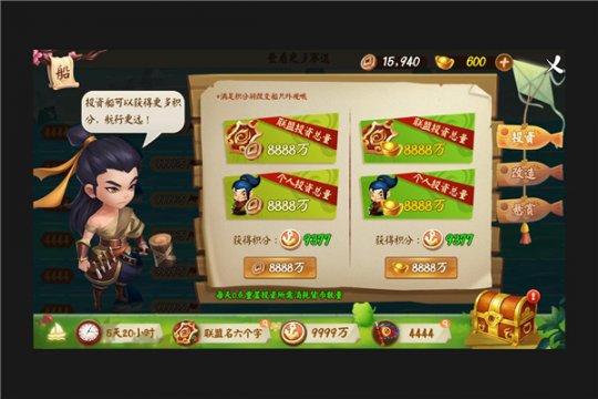 一切的努力都是值得被看见的,在三国航海赛中,多付出,就会得到更多,不仅有达到指定积分的宝箱奖励,系统还设置了个人积分排行榜与联盟积分排行榜,极大激发了各位玩家的积极性。联盟积分排行在前列就可以获得珍稀图纸与熔炼用的消耗道具,还有巨额的元宝奖励,让人心动不已。另外,个人排行积分奖励也是十分可观,高达数亿的铜币,能让装备爆发更强战斗力的升阶玉,这些都是可遇不可求的。在三国航海赛中,只要各位玩家齐心协力,添砖加瓦,最后获得的奖励绝对是不可估量的。另外达到一定的数额,还能改变船只的外貌,让它变得更加的炫酷,所以你还在等什么,为了你的联盟,为了你自己而奋勇而战吧。
