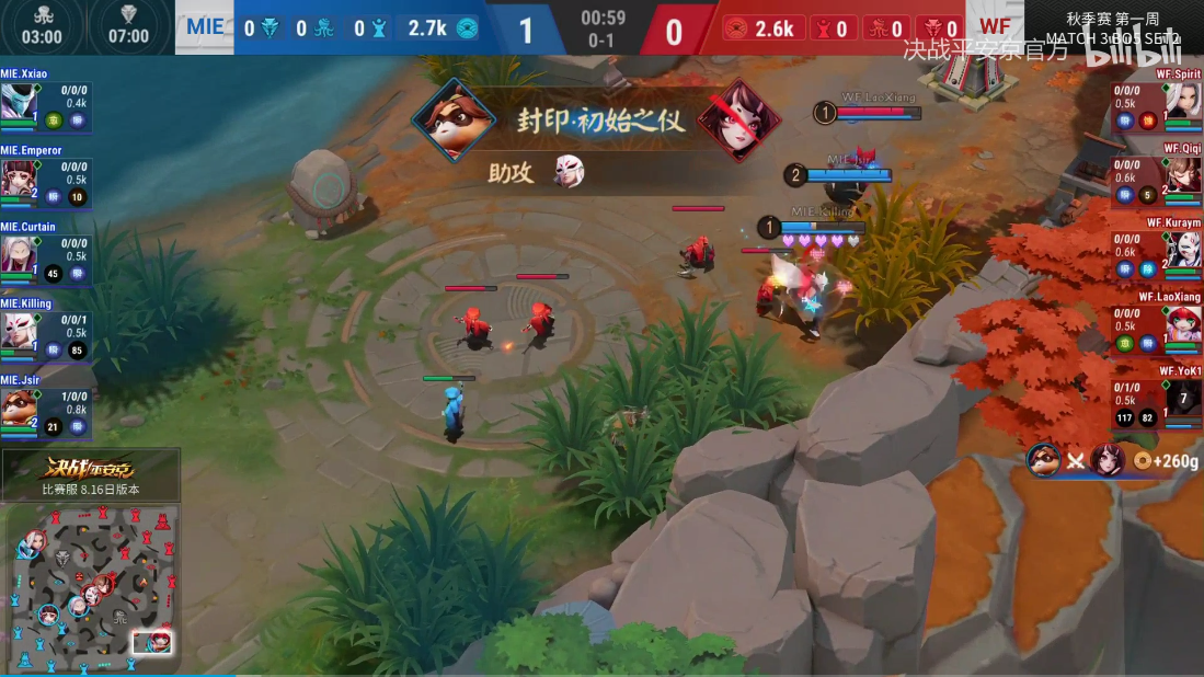 本赛季OPL秋季赛的常规赛已于8月22日正式打响,老牌战队硝烟再起,新鲜血液不断注入,与此同时版本多次更迭,各个战队队员变动,都让本次的秋季赛充满了未知和期待。首周的比赛火药味十足,看点多多。首先揭幕战是OMG与BLG.M的精彩对决,以2:3的比分为大家拉开赛季帷幕,而OG与TOT的强强对决则以3:1的比分结束。 BLG.M坚韧不拔,以3:2比分战胜OMG 前面两小局,BLG.M劣势中沉稳运营,不放过任何一个机会,在第二小局成功逆转局势,与OMG拉平1:1比分。 比赛来到第三小局,双方在BP阵容的选择上改变不是非常大,更多的都是选择在之前的阵容上做出调整。BLG.M锁定了白狼配合一目连,拿出4保1体系。OMG则是选择线上压制力较强的妖狐与萤草阵容进行对线针对。 比赛开局双方和平开野,在比赛2分钟左右爆发一血,OMG.inYan夜叉瞬步走位,强势输出,一血由OMG.Feng的萤草顺利拿下。 2分半不到,BLG.M开始频频失塔,OMG强势掌握线权。比赛进入到10分种,双方在大蛇处展开团战,BLG.M.As的一目连被控,inYan夜叉以一打五,狸猫配合点掉BLG.M后排烟烟罗,鬼使白同时献祭掉白狼,最终OMG在比赛10分半时成功拿下大蛇。而此时BLG.M的经济已与OMG相差5K多,人头数也是相差9个,只要OMG不给机会,BLG.M翻盘的可能性可以说是微乎其微。 比赛进入到快12分钟,BLG.M在自家高地门口防守,BLG.M.Yse鸦天狗控到OMG方4人,导致OMG团战阵型散开,BLG.M队员趁机抓死夜叉和妖狐,打出一波0换4的团战,拿回一些经济并再次寻找机会,重整旗鼓。 比赛进入到中后期,BLG.M现出超强的韧性,成功将比赛拖入后期,BLG.M.Pin白狼爆炸输出,帮助队伍抢下大蛇及年兽,展现了极强的团队协作能力和执行力,反超OMG近5k经济,成功拿下这一局。 WF展现全新面貌,以3:0利落击败 MIE WF和MIE的新兵之战也是非常令人期待的一场对决。MIE在ODL登顶后,在升降赛击败GH和JCR,站上OPL的舞台。WF这支队伍则是在春季赛成长迅速,击败过TOT、LP,而这次秋季赛的新队员则是来自于ODL的亚军队伍TOC,同样也是实力不俗。 第一小局WF多次主动开团,率先拿下一分。比赛进入到第二小局,双方BP环节相比第一小局,下路组合是进行了互换。WF选择玉藻前搭配小松丸,更偏于打后期的阵容。MIE则是换了另外一个套路,拿出了傀儡师让经济给荒川,针对对面下路可以给到更多干扰和压力,是偏前中期选择上更多元的阵容。 开局一分钟,MIE.Jsir狸猫发挥前期优势,击杀WF.Yok1桃花妖,但随后被WF中野一波输出拉回人头数。 后续双方一直在互相牵扯,平稳发育,人头数都保持在3-3,没有爆发团战。比赛进入到11分左右,WF抢先开打大蛇,MIE前来阻挡,结果被MIE的狸猫抢掉大蛇,历史再次重演,和第一小局一样再次损失掉第一条大蛇。 比赛进入到13分,双方在石距处开团,WF.Spirit小袖之手强行进场击杀狸猫,小松丸残血一力保下Qiqi黑童子,双方打出2换2。17分左右,MIE依旧是领先WF 3k的经济。大蛇刷新后,双方在大蛇处徘徊,MIE判官大招先行刮到MIE小松丸,却被WF反打,留下MIE狸猫和荒川。比赛进入到18分,最终是由WF成功拿下这条大蛇。 在19分,拿下大蛇的WF手握比赛主动权,一举攻上MIE高地,WF在MIE高地打出2换4,有惊无险推掉了对方基地。 在第下一周比赛中,状态大好的BLG.M将会迎战新军MIE,OG将迎战多方英豪集聚的EG,OMG战队将会迎战XROCK战队。谁将在第二周脱颖而出?我们拭目以待! 《决战!平安京》OPL赛事指定饮品脉动维生素饮料,为2019OPL秋季赛保驾护航。赛事将由官方播出渠道——CC直播、B站、斗鱼、西瓜视频、爱奇艺直播、一直播、百家号、优酷、快手、触手、KilaKila、抖音联合支持播出,广大玩家们可通过以上平台观看实时赛事。 |
