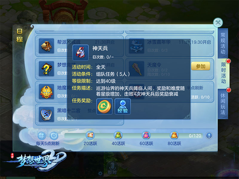 《梦想世界3D》二周年庆全新内容“九霄盛典”今日上线。飞云之上,遨游九霄,全新地图凌霄城震撼上线。噬星魔龙霸气登场,武极天下全服对决,还有周年时装张扬个性!神天兵玩法如何玩?学会技巧过关变简单。 任务介绍 神天兵是随机刷新的任务,每天的半点时间在世界地图中刷新(可在系统频道中查看具体刷新地点)。可以提前组队5人等待。刷新后需要手动进入战斗,战斗胜利获得奖励。神天兵有星级区分,星级越高难度越大,获得的奖励也越好。小伙伴可以根据“普通的、精英的、疯狂的、恐怖的、炼狱的”区分天兵的难度。每天前4次可以获得丰厚奖励,4次之后奖励衰减,每周获得奖励次数为20次。 玩法介绍 敌人由“4个天狼兽+泽苍魔姬+修罗武士+爆裂草团+天兵”组成。天狼兽是小怪,有些会输出,有些会加血;泽苍魔姬伤害高而且在boss死后会触发自爆:三回合后对全体造成伤害;修罗武士伤害高并且会使用物理技能;爆裂草团被攻击后会对攻击的玩家造成高额的反击伤害,第3回合会逃跑所以不需要理会;天兵是boss会各种技能而且伤害很高。过关之后可以获得经验、银两,按照神天兵星级有概率获得对应的装备灵/装备碎片/如意宝玉。 过关技巧 高星级的神天兵难度会比较大,一般队伍都会要求有1奶1封或者2奶配输出。战斗开始后,可以先用单法集火后排的唯一一个天狼兽,这个天狼兽会召唤小鬼,小鬼多了会十分麻烦。在第三回合后爆裂草团会自己逃跑所以不用理会。击杀完后排的天狼兽后再清理两个高等小怪,两个高等小怪清理完后基本已经胜券在握了,最后只要击杀boss最后清场剩余的小怪就可以取得胜利。 如果队伍有封系职业可以优先封泽苍魔姬和修罗武士,这两个高等小怪的伤害比较高。按照这种打法挑战起来会比较合理,当然队伍的实力也是一部分因素,如果有慈航、四海等特技会更佳。另外宠物死亡后也要及时的召唤,宠物可以扛伤害也可以打伤害或者喂药。 |