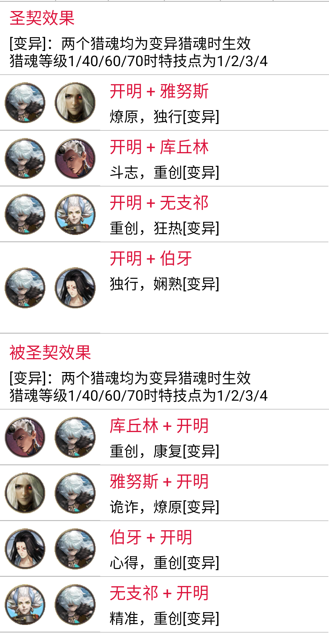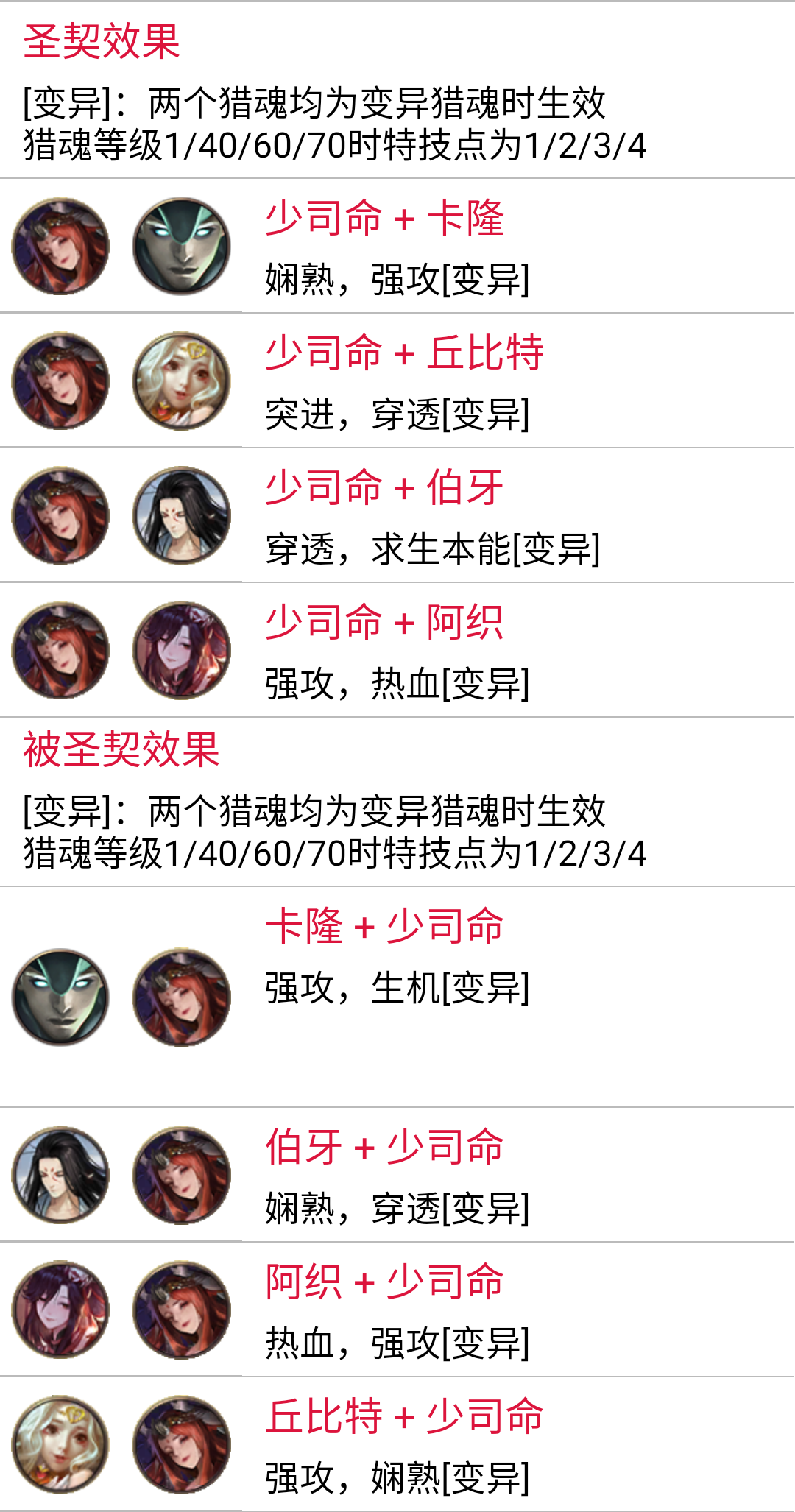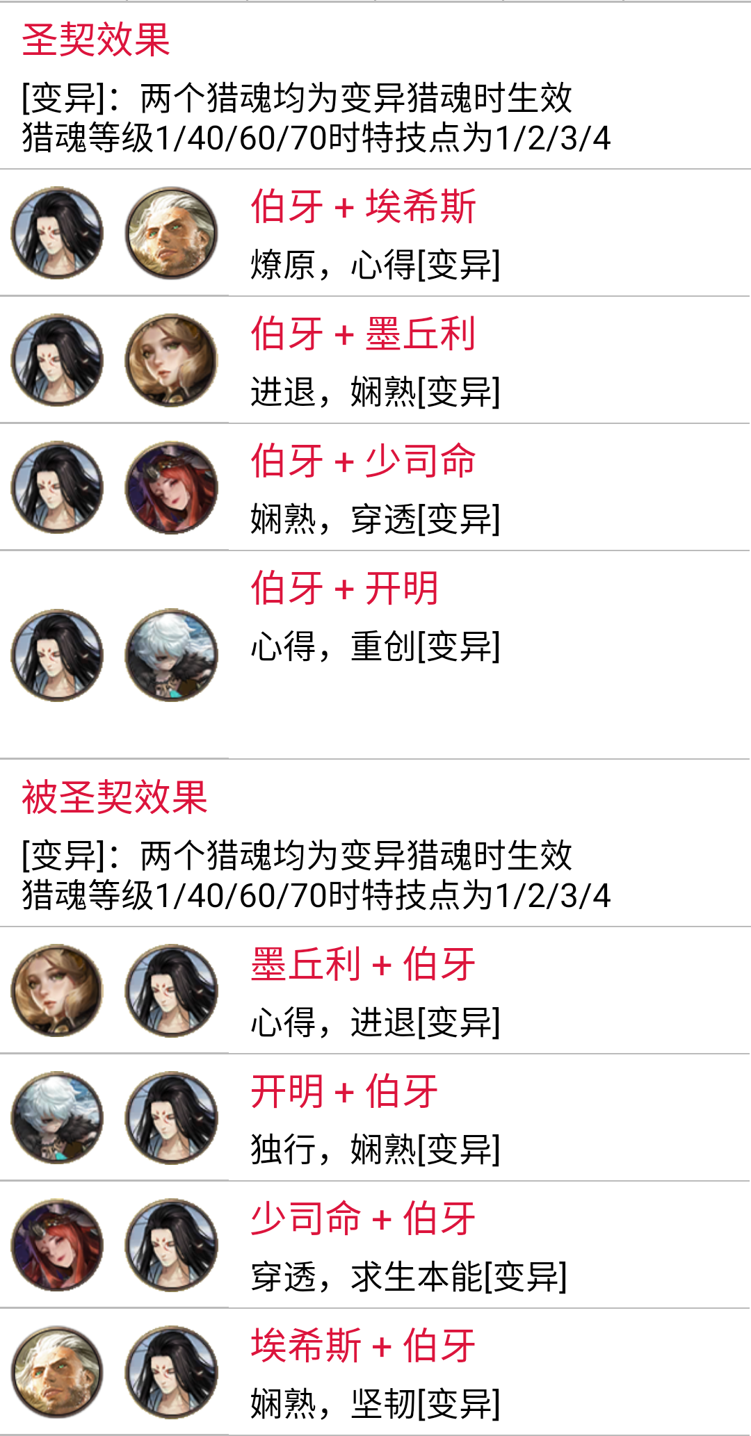 夜行妖魂,《猎魂觉醒》X《神都夜行录》联动活动开启!“世间妖怪,皆有温度”《神都夜行录》联动第一弹时间为2019年8月22日维护后至2019年9月5日6时。联动猎魂副本开启,探究来自东方的神秘猎魂! 本次第一弹新猎魂为昆仑瑞兽·开明(圣光系),雪境琴心·伯牙(黑暗系),观星知命·阿织(秘术系),乐兮相知·少司命(泰坦系),千里江猿王·无支祁(自然系)。出战方面,神都第一弹猎魂出战技能有部分引用讨鬼传猎魂技能,同时也有功能性更强,且设定得较为强大的魂技,值得拥有;配装方面,神都第一弹猎魂出现了各种主流特技的镶嵌猎魂,玩家在配装时有更多的选择,同时也丰富了猎魂圣契系统。今天我们就来听听官方课代表给大家总结的猎魂攻略吧! 1. 出战分析 昆仑瑞兽·开明 昆仑瑞兽·开明 是一个输出平稳且增益幅度较高的物理出战猎魂。 【乘风踏焰】带来最高达42%的攻击力提升和8%的全伤害减免;【禁军列阵】常驻在暴击时增加暴击率和暴击伤害;五星觉醒特性是使用【乘风踏焰】时攻击力额外增加30%,这样一共增加了72%的攻击力,非常强大。在提升伤害的同时补足了双暴,而且技能覆盖率很广,输出平滑,是个物理玩家值得入手的出战猎魂。 乐兮相知·少司命 乐兮相知·少司命彰显了泰坦系的狂暴的特性,是一个将点状攻击变成面状,同时又增加自身和全队输出能力的通用型猎魂。伤害增幅主要为传递的那60%伤害,暴击伤害和弱点伤害增幅也是相当可观。并且该猎魂是目前少数可以变相增加副武器灵刃输出的猎魂。 【万物万灵】是猎魂觉醒目前第一个尝试将肢体伤害部分传递到其他肢体的技能,使用后一定时间内攻击巨兽肢体效果为同时攻击多个肢体,打击弱点时造成的伤害皆为弱点伤害,并且使用副武器攻击时该技能同样生效;【无情天道】使用后增加大量的暴击伤害并且增加队友15%暴伤,给自己提升输出的同时增强全队的输出能力;五星觉醒特性更是增加了对弱点肢体的伤害,进一步提高输出能力。技能覆盖情况复合泰坦系一贯的特点,分别为15/70和20/90,技能覆盖率较低。 雪境琴心·伯牙 雪境琴心·伯牙依旧遵循了黑暗系元素向的风格,技能类似讨鬼传猎魂服部半藏,转化元素伤害使单元素在面对多BOSS情况下更得心应手。未获得服部半藏的玩家可以考虑入手一个。 【九霄环佩】在隐身的同时将自身元素攻击力转化为巨兽最惧怕的属性攻击,在面对元素被克制的情况下能发挥神效;【气冲斗牛】则提供了大量的暴击伤害增加,技能期间集中巨兽使其被暴击几率提升,变相的提升了全队的暴击率,增加了全队的输出能力。五星觉醒特性减少【气冲斗牛】的冷却时间,进一步增加了技能覆盖率。伯牙相对于半藏更注重团队的输出。技能覆盖情况为18/80-90和15/80,覆盖率也较低。 观星知命·阿织 观星知命·阿织继承了秘术系往日“奇技淫巧之风”,在战斗中的增幅与出战猎宠密切相关。爱养猎宠的玩家可以考虑入手一个~ 【终末赤星】继承出战猎宠的部分攻击力和元素攻击力,未出战猎宠则增加攻击伤害,具体数值随出战猎宠的属性来决定;【流光之轮】提升大量魂锁伤害,在拉完魂锁之后恢复25%的魂锁能量,更方便玩家利用魂锁进行破位。五星觉醒特性是使用【终末赤星】后无视巨兽15%护甲。技能覆盖情况为25/90和12/60,覆盖率一般。 千里江猿王·无支祁 千里江猿王·无支祁保留了自然系独特的刷新技能冷却效果,和出云一样利用耐力值增幅伤害。 【八极荒神】又是一个可以刷新技能的魂技,在刷新技能的同时可以增加额外的暴击伤害;【定海之力】消耗20%耐力值使用,并且在持续范围内剩余耐力值决定攻击伤害的加成。技能释放后全队玩家都可以增益,是个通用性很强的魂技。五星觉醒特性是使用【八极荒神】后恢复一个魂技的使用次数,并且获得10%的暴击伤害加成,提供伤害的同时保证了技能使用率。技能覆盖情况为20/70和18/90,覆盖率较低。 与以往强势热门出战猎魂对比: 【物理】 物理出战百花齐放,四强为出云阿国、潘朵拉、穷奇和少司命,明智光秀和拉托娜适合能够连续破肢体的情况,吸血鬼和克苏鲁通用性很好并且兼顾功能性(隐身/控制),无支祁加成团队作战,月咏玛赫和开明常驻特技稳定生效适合鏖战局。 【元素】 元素出战异彩纷呈,爆发型为少司命、穷奇、亚瑟、猎犬,穷奇爆发最强,亚瑟持续稍好总伤较高,少司命总伤最高,猎犬爆发高且比少司命、亚瑟和穷奇持续时间长,持续型为黑霜夫人、莫甘娜、库丘林、安培晴明、月咏和玛赫,其中黑霜夫人最为实用,莫甘娜和库丘林、安培晴明分别适合低元素星等和高元素星等的情况,安倍晴明适合暴击率低于50%且高爆伤的情况,月咏和玛赫同物理的结论。值得一提的是服部半藏和伯牙,非常适合竞速多boss抗性不同场景。 2. 配装分析 【新猎魂特技】 此次登场的五个联动猎魂的特技也是相当出色,值得一提的是少司命的主强攻,副穿透镶嵌特技,物理玩家终于可以除祝融亚瑟外多一种更好的强攻镶嵌主魂选择!此外,猎魂开明镶嵌增加独行和重创特技,为需要重创特技的玩家提供了更多选择;伯牙的心得和娴熟特技似乎更适合元素武器镶嵌,不过新套装黯骨套可能堆娴熟会溢出;阿织镶嵌提供热血和进退,似乎也更方便物理玩家堆增伤特技;无支祁镶嵌提升精准和锐利,同时附带两种加暴击率的特技,属性