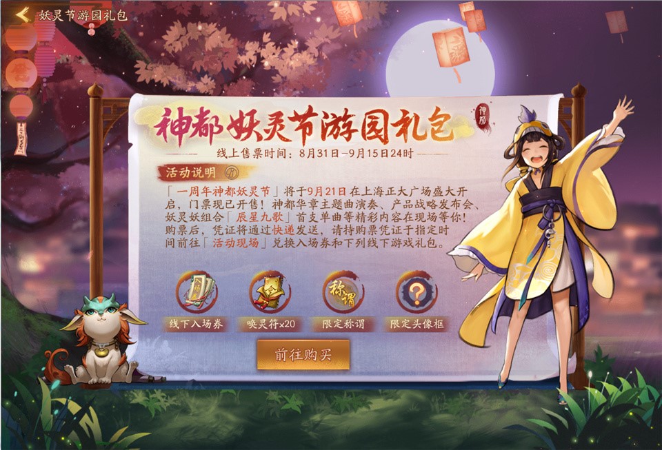 时光倏忽周年至,线下相会共狂欢!网易新概念妖灵大作《神都夜行录》“一周年神都妖灵节”即将于9月21日在上海正大广场开幕,六大看点,惊喜连连,等你来体验!购票通道现已开启,即刻进入游戏内嵌周边商城,抢购游园礼包,锁定线下入场资格,领取丰厚奖励! 国风盛宴,启幕线下狂欢 自去年9月开启全平台公测以来,《神都夜行录》始终热度不减。目前,已有超过1800万降妖师登录神都世界,品味盛唐风韵,邂逅各色妖灵,畅享战斗乐趣。 9月21日,《神都夜行录》将携众妖灵降临魔都,举行线下狂欢活动,神都友人精心准备了国风视听盛宴,必将为降妖师创造难忘的美好回忆。 神都妖灵节现场,由知名音乐制作人林海亲自操刀的《神都夜行录》周年庆宣传曲《妖月记》将重磅首发,囚牛、团团子、官枋匚、二胡妹和紫格哈哈五位知名音乐UP主将携手为你演绎;KBShinya、哦漏等知名古风歌手将倾情献声,吟唐风雅韵,唱盛世气象;知名果哝双子将带来国风舞蹈,舞动神都,惊艳全场。 重磅内容,揭秘未来计划 《神都夜行录》的成长,离不开降妖师们的支持与厚爱,你的意见与建议,也将使神都世界更加美好。活动现场,《神都夜行录》将举办策划面对面活动,你对游戏的赞美、批评甚至吐槽,都可以当面向策划倾吐,你的某个建议,或许就将成为未来神都世界的坚实基石!策划还将在现场发布《神都夜行录》年度计划,绝密内容首度曝光,尽在“一周年神都妖灵节”! 除了精致的画面,动人的剧情和激烈的战斗,《神都夜行录》的妖灵配音也深受降妖师的喜爱。本次妖灵节活动中,夏磊、新月冰冰、幽舞越山等人气声优将登台助阵,并上演全新番外篇;“神都妖灵妖”活动中,大司命、应龙、司羿和少司命、山鬼、阿织六位妖灵脱颖而出,成为妖族代言人,并组成“辰星九歌”组合正式出道,他们也将在活动现场为降妖师带来首支单曲! 抢购开始,赢取入场资格 本次“一周年神都妖灵节”活动的唯一官方购票渠道为游戏内嵌周边商城,降妖师通过自动弹出的周年庆页面和屏幕右侧功能栏的“周年小铺”横幅广告均可进入商城抢购。 周年庆门票以礼包形式开售,降妖师在周边商城点击购买“神都妖灵节游园礼包”后,《神都夜行录》将通过快递发送购票凭证,降妖师在9月21日当天前往上海正大广场活动现场,即可兑换线下入场券,并将获得20个唤灵符、限定称号和限定头像框三大福利! 神都同道聚魔都,周年狂欢乐不停!网易新概念妖灵大作《神都夜行录》“一周年神都妖灵节”即将于9月21日在上海正大广场开幕,购票渠道现已开通,即刻登录游戏,抢购游园礼包,锁定入场资格! 【神都夜行录】 国韵之美,归于盛唐。网易新概念妖灵手游《神都夜行录》是一款国风妖怪收集RPG手游!在游戏中,你可以奇遇万千妖灵,体验绝美百妖剧情!盛世大唐,国韵美学,让你亲历神都风志!每有妖物作乱之日,便是降妖师现身之时,让我们一起走进国风妖怪的世界! 《神都夜行录》官网:http://sd.163.com/ 《神都夜行录》微信公众号:神都夜行录 《神都夜行录》官方微博:神都夜行录 《神都夜行录》官方抖音号:神都夜行录降妖司 《神都夜行录》官方贴吧:神都夜行录 《神都夜行录》网易大神:神都夜行录 |
