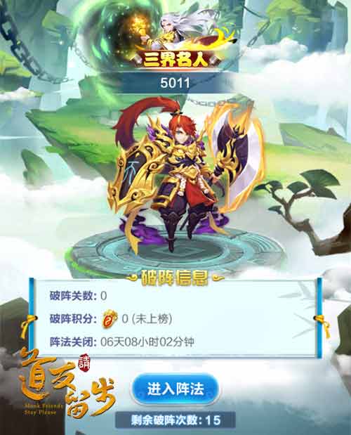 东方神话卡牌手游《道友请留步》新PVE玩法“万仙阵”火热进行中。该玩法完美还原封神故事中的经典阵法“万仙阵”——百位神仙等玩家挑战,海量通关福利拿到手软! “万仙阵”是《道友请留步》手游中的PVE玩法,当玩家等级达到105级后即可开启。玩法将持续开启七天,这七天内玩家需要挑战100个关卡。玩法开启的前六天,每天赠送15次挑战次数;最后一天赠送10次挑战次数。每届玩法开启过程中,关卡挑战进度会被每日储存,不会被重置。 玩家点击游戏界面下方的“斗法”按钮,即可找到“万仙阵”玩法,与百位神仙斗智斗勇。 “万仙阵”的主要关卡是战斗关卡:玩家单人进入PVE副本,与神仙BOSS进行战斗。此外还有阵眼关卡,该种关卡无需挑战,守关怪物会直接放行;智斗关卡则是玩家需要答题才可通过。 “万仙阵”玩法设有三大奖励,道友可以通过该玩法收获海量福利。 “万仙宝库”为一重奖励:通关关卡的玩家可以得到万仙币,并可使用万仙币在万仙宝库中兑换游戏道具,比如金丹、稀有碎片等。 “成就奖励”为二重奖励:玩家根据累计通关次数,可以得到指定档位奖励。当通关次数达到100关,还能得到稀有道具化金丹、金装之灵! “排行奖励”为三重奖励:在“万仙阵”结束后,游戏会根据玩家的排行情况,进行奖励发放。奖励中有上万元宝红包,玩家可与游戏好友共享成就喜悦;还有稀有熏香碎片等道具,帮助玩家养成神仙提升战力! 东方神话卡牌手游《道友请留步》的“万仙阵”玩法正在进行中,有勇用谋方可通关所有关卡。现在下载游戏,即可参与活动挑战百位神仙,赢走海量福利,心动就来下载吧! |