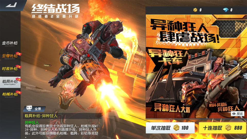 秋风送爽,热情不息!网易快节奏开黑枪战竞技手游《终结战场》九月惊喜接连不断,异种狂人系列领衔打造超绝视效,载具枪械全面爆发!独特惊艳外观、给力优惠活动、极致战斗体验,《终结战场》带你一爽到底! 异种来袭,狂人战场 在激烈的火力交织之中,在潜伏的危险边缘,《终结战场》给你最个性的亮相!全新外观“异种狂人”系列,不仅包括狂人形态外装、盾牌、M134枪械外观等等,还有同主题皮卡外观,让玩家轻松标新立“异”,在战场酷炫“狂”奔! 异种狂人外装的设计,将科技、原始、兽等元素融为一体,近似蜥蜴类的体貌细节与精致皮甲装备,充分展现了“异种”的奇异之处。 “大盾”的设计则更为奔放,火焰与兽角的组合,正是原始时代力量的象征,如今它出现在玩家的手中,必须会引爆新的战斗奇迹。 M134-异种的造型,像是即将喷火的恶龙,让敌人对它的威力更加忌惮。 而最最惊艳的,还是升至Lv.3的异种狂人皮卡,它就像能够高速移动的火山一样,带着一往无前的霸气,能够载着玩家在战场上肆意纵横。想要获得这套“异种狂人”系列,可以通过载具补给抽取兑换。 黑金魅力,华贵对决 在此次更新中,枪械补给还将上架凝聚了西方贵族气质的Thompson“黑金”系列外观,它精致的雕刻工艺令人赞叹不己,当玩家通过抽取获得黑金-I后,还可以通过升级得到“黑金之刺”,并开启特殊展示动画和特殊击杀播报效果。 点滴细节,玩法增强 随着本次更新上线,此前大受欢迎的随身载具——夏日自行车开启载人功能,无论是情侣同行还是兄弟闺蜜并肩作战,都可以轻松实现行动同步。需要注意的是自行车在载人时无法使用跳跃功能。 同时,《终结战场》的部分系统以及部分玩法和地图将在玩家达到固定等级和段位后开放,方便玩家及时收获属于自己的福利和引导教学,融入战场更轻松,为大神之路清扫障碍。而寻宝奇兵等活动也将增加冷却时间和次数限制,让竞争更加公正有趣,福利乐趣双丰收。 网易快节奏开黑枪战竞技手游《终结战场》今日更新上线,秋高气爽的时节,让枪火将热血继续点燃!即刻登录游戏官网,更多资讯福利惊喜为你呈现! 游戏官网:http://zjzc.163.com/ 官方微信:网易终结战场(wyzjz163) 官方微博:https://weibo.com/zhongjiezhe2 关于《终结战场》 战场升级,火力全开!《终结者2》手游全面升级为《终结战场》。终结战场,秘宝降临,神秘遗物引爆战斗!寻宝奇兵,全新玩法,首次出击!随身载具,一键起跳,施展炫技!焕然一新的战术对决,酣畅淋漓的竞技体验,燃爆你的假期!更有全新补给等你来战!全新福利活动、拉好友赢时装、回归福利全新升级等多重活动等你来! |