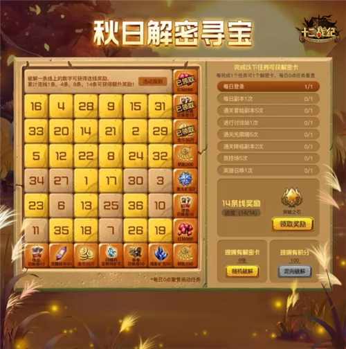 飒爽九月,纵有再多不舍暑期也到了尾声,还在上学的骑士们迎来了属于自己的新学期。《十二战纪》值此缤纷开学季,也准备了多重劲爆好礼与福利迎接新生!大家一起来看看吧! 无限重置十连抽! 本次对于新手教程抽卡环节的史诗级优化实在强翻天,所有新加入的骑士均可获得一次特权——无限重置十连抽。首次十连抽时,每位玩家均可无限次的“抽卡”,当抽到特殊英雄时可以放在临时保管箱当中,最后可以在临时保管箱里挑选出骑士最喜欢的英雄。告别非酋简直不要太轻松,本命英雄我来了!! 秋日解密寻宝! 秋日来临,新的庆典活动秋日解密寻宝也已经上线。每次完成日常任务都能够获得解密卡以点亮对应的数字,每点亮一个数字就能够获得一次奖励。最关键的是,当点亮的数字练成一条线时,就能够获得连续奖励,什么觉醒碎片,红钻统统不是事。怎么样,体会到了什么叫乐趣奖励两开花了吗? 骑士学院奖励提升 让每一个新加入的成员都能得到最棒的游戏体验,本次骑士学院的更新也十分走心。学院奖励有了飞一般的提升,觉醒碎片,七骑士觉醒装备,首领宝石,只有你不敢想,没有《十二战纪》不敢送! 新世界红钻大放送! 随着新学期的开启,咱们《十二战纪》新世界也开始了红钻大放送!冒险的路很长,但《十二战纪》会与你风雨同舟!完成目标免费领取红钻,最高可得666红钻! 成长无畏,热血征战 面对成长,我们无所畏惧,最新的降临副本也已更新后上线。从8月29到9月10日,通关降临副本就能够免费获得包括觉醒碎片,四皇装备等等丰富奖励!最关键的是,新玩家或回归玩家可以获得双倍入场机会!获得奖励快人一步! 阿奎拉概率UPUPUP! 新英雄阿奎拉作为新晋女神,也受到超多玩家喜爱。剑锋上荡漾着致命的流光,巨型塔盾犹如铜山铁壁坚不可摧。攻守兼备的她携带致死特效势必撼动整个竞技场。本次阿奎拉概率UP活动将阿奎拉40级的速度直接拉满,提前占据竞技场优势位,为成为最强铺平道路! 新服背包免费扩充 新服背包免费拓展,一次性让你拥有最大背包,冒险再也没有后顾之忧!同时,整个月的经验金币双加成,升级冒险两不误! |