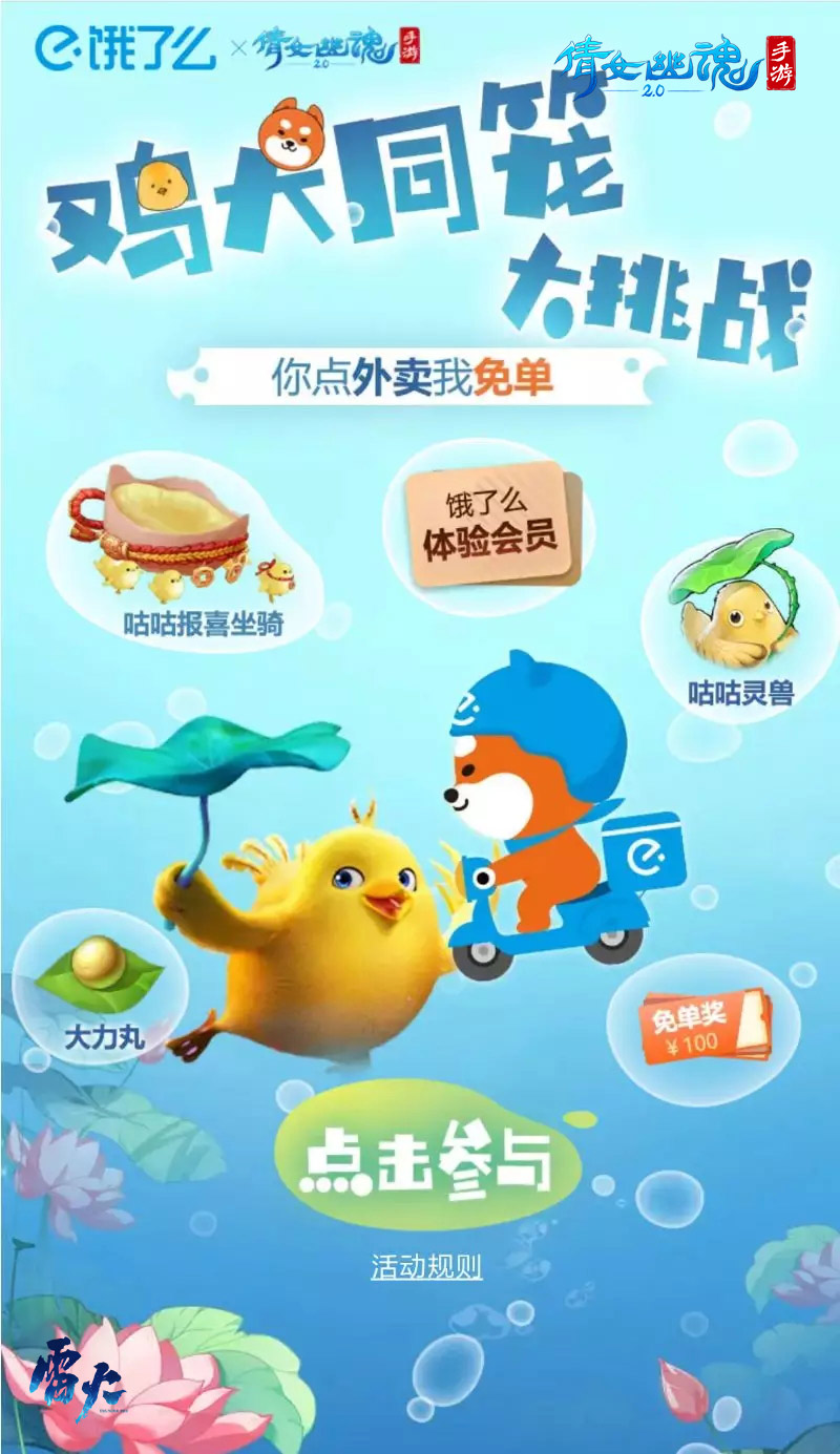 又是一年开学季,但对于倩女手游玩家而言这个秋天非同一般!倩女手游空降饿了么福利大使,H5活动于今日开启,鸡犬同笼难题挑战,完成便有机会获得海量好礼!本次活动也将是唯一获得咕咕鸡的机会,抓紧时机,莫待无花空折枝。倩女手游X饿了么推出倩女主题套餐,更有线下主题店即将上线,这个秋天,倩女手游好吃又好玩! 【饿了么福利大使降临三界,参与饿了么福利活动拿海量好礼】 今日版本更新之后饿了么福利大使降临三界!打开活动页面-休闲-饿了么福利参加即可前往金陵找到饿了么福利大使。在这里可以参与活动“你点外卖我买单”,挑战完成还可获得奖励:曾陪伴玩家的咕咕鸡灵兽礼包、秀色可餐豪华礼包、饿了么体验会员、价值100元饿了么免单金,还有咕咕鸡报喜坐骑。抽中奖品后,只需在福利大使处兑换即可马上获得。本次活动还将是唯一一次获取咕咕鸡灵兽的机会,把握时机,不留遗憾! 【鸡犬同笼H5烧脑挑战,完成则可参与抽取奖品】 又是一年开学季,倩女帮你活跃大脑!鸡犬同笼问题是中国经典数学问题,被记载在距今1500多年前的《孙子算经》之中,饿了么福利大使带着这个古老的问题降临三界!玩家只需在H5页面解答这个经典古老的数学问题就可在福利大使处获得三次抽奖机会!大量丰厚礼品只等你开动脑筋即可获得。三次抽奖机会总能得到你的心仪奖品。 【倩女手游主题快餐店即将开启,全新服务器于今日正式启动】 秋意渐浓,倩女手游与美食二者可兼得!倩女手游华莱士线下主题店即将正式开业!帮派聚会、好友面基好去处,各位侠侣们也可以来到华莱士倩女手游主题店,共同度过浪漫用餐时光!另外9月7日饿了么超级品类日还将推出倩女主题套餐,敬请期待! 倩女手游互通大区【人间味】今日开启全新服务器【杨枝甘露】,更多精彩游戏内容等你上线体验! 【关于《倩女幽魂》手游】 国民手游《倩女幽魂》是《新倩女幽魂》端游的官方手游,拥有端游级唯美画风与人设,传承经典玩法!魔气弥漫,世界事件卷土重来。次世代更新来袭,角色华丽新生!剧情全面迭代,场景3D升级,倩女幽魂手游2.0时代开启全新纪元! 《倩女幽魂》手游官方网站:https://qnm.163.com/ 《倩女幽魂》手游官方微博:@倩女幽魂手游 《倩女幽魂》手游官方微信:网易倩女幽魂手游 《倩女幽魂》手游官方贴吧:倩女幽魂手游吧 《倩女幽魂》手游Facebook:@qnyhshouyou 《倩女幽魂》手游助手App:https://yxzs.163.com/qnm/ 《倩女幽魂》手游网易大神:倩女幽魂手游菌 |