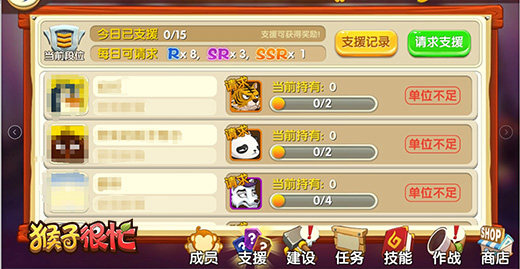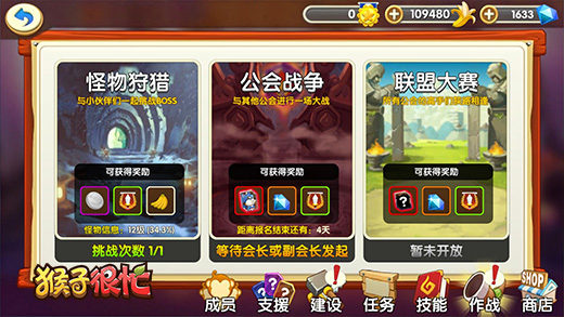 自《猴子很忙》更新了新版本公会战之后,相信每一位玩家都感受到公会的重要性了,本周小编给大家介绍一下公会的相关功能。首先公会是需要玩家段位达到白银III段位才能解锁。所以玩家想加入公会的话,一定要尽快将自己的段位提升,达到白银III段位还是非常简单的。 当玩家选择一个公会加入之后,可以看到公会中7大功能,分别是“成员”,“支援”,“建设”,“任务”,“技能”,“作战”,“商店”。其中“成员”功能是可以看到公会中的成员名字,登陆情况,段位和职位,以方便公会成员之间可以更好的交流。 “支援”功能是用来向公会内其他成员索要动物或者棍绳的,因为每一位玩家的阵容不一样,所以有些动物或者棍绳玩家用不到,这样就可以支援给其他需要的玩家,玩家之间可以提前商量好各自需要的动物或者棍绳,然后进行支援,这样就可以形成交换,各自均可以提升自己的阵容实力。 “建设”功能是用来提升公会声望的,玩家可以根据自身的条件选择普通建设,高级建设和超级建设,三种建设所需要的材料和获得的奖励均不相同,大家可以在“建设”功能中自行查看,相关提示非常清晰易懂。 “任务”功能是需要每一位玩家齐心协力完成任务,然后可以领取奖励,奖励为普通宝箱,可以获得动物,棍绳和香蕉,玩家可以在交流之后,一起根据任务要求完成任务,这样就可以快速的获得奖励。 “作战”功能是目前公会所有功能中最重要的环节,其中包括“怪物狩猎”,“公会战争”,“联盟大赛”,其中“联盟大赛”尚未开放。“怪物狩猎”是每天都可以进行的活动,玩家可以用自己的阵容去挑战boss,对boss的伤害越高,获得的奖励也就越多,需要注意的是boss非常凶猛,一定要灵活运用阵容中的每一个动物,才能在有限的回合内对boss造成更多的伤害。“公会战争”功能是最近一次游戏更新推出的功能,每周参与一次,大家需要在游戏中尽可能的多交流,多听指挥,这样在公会战中才能取得好名次,“公会战争”的奖励非常丰富,大家一定要多多参与。 “商店”功能是给与玩家的福利,玩家通过“公会建设”和“怪物狩猎”获得的公会币可以在此界面进行兑换,有的动物和棍绳都是十分稀有并且非常实用的,而且还可以兑换“XR”级别的魔法师暴雪哦! 公会系统的功能小编已经给大家介绍完毕了,赶快加入《猴子很忙》公会和公会成员们一起为公会而战吧! |