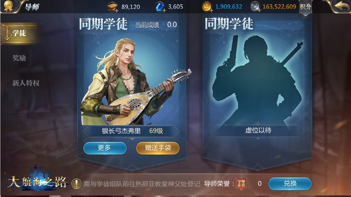 告别孤身一人,写下一段海上的师徒传奇,《大航海之路》全新师徒系统即将开启!船长们可以与志同道合的朋友结为全新的师徒关系,一同经历海上的历练,解锁不同等级的丰厚奖励,更有专属师徒头衔等你来获取。征服这片无边的海域,从建立师徒关系开始! 建立师徒关系 开启全新冒险 所有船长均可体验全新师徒系统,其中,等级小于70级的玩家可以成为学徒,等级大于50级的玩家,可担当航海导师,招收并教导学徒。 想要建立师徒关系的船长,可组队前往热那亚教堂的神父处办理,一旦确认师徒关系,即可开启你们共同冒险、一起成长的全新篇章。 (系统入口:左侧展开页中,在玩家达到50级后即可看到) (热那亚港口教堂-神父) (确认师徒关系) 选择主修方向 迎接历练成长 成为师徒后,学徒需要选择“战”、“商”、“冒”中的一个方向作为主修。其中,“战”是以战斗为主的日常与考核目标,“商”是以贸易为主的日常与考核目标,“冒”则是以探险为主的日常与考核目标。 (导师方界面) (学徒方界面) (学徒需要选择主修方向) 主修方向确认之后,学徒将在师傅的引导和帮助之下,共同完成一系列的师徒挑战,就能够积累师徒积分。每达到一定的成绩阶段,师徒双方就能领取包括觉醒抽、武器防具冶炼、蓝黄球和大量经验与海币等在内的丰厚奖励。顺利出师之后,师徒双方还将获得丰厚的出师奖励! (学徒每日目标、考核目标) (学徒成绩达到指定分段后的奖励) (学徒的出师奖励) 赠送新人特权 解锁额外丰厚奖励 除了一同完成师徒任务,解锁丰厚奖励之外,导师每日可以给徒弟赠送包含金币、专属战力提升道具在内的金币、蓝钻手袋,助其快速成长。 此外,导师还可花费680钻石,赠送徒弟专属新人特权(徒弟也可自己购买)。拥有新人特权的船长,完成师徒日常目标时可获得双倍成绩(分数上限不变),组队一同完成时,导师也可获得双倍积分(积分上限不变),同时,所得出师奖励也将愈加丰厚。 (新人特权) 《大航海之路》师徒系统即将上线,建立全新师徒羁绊,经历不一样的磨练和成长,更有机会解锁包括觉醒抽、武器防具冶炼、蓝黄球和大量经验与海币等在内的丰厚奖励!属于海上师徒的全新篇章即将起航。后续游戏还将陆续为船长带来更多福利活动、玩法。更多游戏内容,请关注《大航海之路》官网、官方论坛。 此外,网易和电信合作推出网易白金卡,玩游戏,听音乐,流量统统免费(包括网易所有产品),高铁玩游戏不掉线!惊喜多多,赶紧来体验吧! (PC端官网地址:https://bjk.163.com/) (移动端地址: https://red.163.com/hongka/hongka.html?cmpid=null&shopid=null#music_tk) |