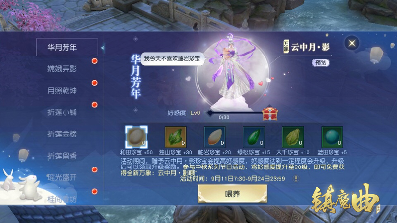 又到一年仲秋时节,中州众生于魔族侵袭中稍得空闲,亦组织起中秋庆典。9月11日至9月24日间,有天宫嫦娥临凡,有皎月幻境现世,亦有全新万象化形之灵物现身,邀八部众天命者共庆佳节! 有华月寻芳年,万物化形添新颜 中秋庆典,众生共举,便惊了万物之灵“云中月·影”。其为天地所生之灵物,汇千万年日月之精华。欲得其认可、立下灵魂契约,天命者需寻珍宝投食。云中月·影将视天命者投喂珍宝数量,渐渐放下防备、回馈众多珍稀奖励!若天命者持之以恒、好感至20级后,便可得云中月·影倾心,最终立下契约、以万象化形之法与其共闯中州! 亦有嫦娥遁其踪,月照乾坤奖励足 既是中秋庆典,自少不了嫦娥临凡。久居广寒,仙子亦会动凡心,便趁此机会欲至人间一观。奈何行踪泄露,引来中州众人围观。嫦娥只得藏回圆月里,欲观芳容,须得找到仙踪。如此,还有嫦娥所赠之璀钻、赏月福袋等奖励,天命者莫要错过!每日里寻过了嫦娥,莫忘前往月照·神兵幻境,闯一闯那月宫又如何?天命者于其间可获相应等级之紫色套装装备,80级更有几率掉落随机传奇装备,还有每日首次闯关奖励可供领取! 今年蟾宫不折桂,中州众生换折莲 圆月之上广寒宫,向有蟾宫折桂一说。然此次中秋庆典,中州众生别出心裁,不去蟾宫折桂,只在人间折莲!有折莲小铺,汇聚中州奇珍,天命者若至“瑶光盛开”开启宝箱即可得“莲华令”,铺中所有珍宝均可借此砍价!砍价最多者,还有巧匠所制之图片称谓奉上,令中州谁人不识君!还有别样的外观、道具等奖励,视天命者砍价次数发放,若开启“瑶光盛开”宝箱时收获重复外观,便会换为流光阁所需钱物,由天命者自行选择兑换! 除此之外,中州众生所兴之中秋庆典上,还有月满山河礼、玉京十二楼、芳心诞彩礼、流光转朱阁、风住沉香礼、山海奇珍、武神嘉奖、果然如意礼等活动开放,共庆佳节之余,亦可助天命者收获众多珍宝、实力更进一步! 关于《镇魔曲》手游: 双生之境,千形万象——治愈系MMO《镇魔曲》,2019年度新版今日上线!涅槃之后全新境界,元神分身正式到来,共闯首个多重宇宙概念副本“鸿蒙境”!温情家园北欧风焕新,收藏、点化实力更进;中州万物缔结灵契,七十二变化形万千!更有一册在手,记录中州旅途,共写“镇魔纪念册”!七大职业、十一大主角、21个战斗流派,“战法牧”组团开荒。交易·师徒·夫妻·家园,真实关系温情陪伴! 官方网站:https://zm.163.com 官方微信公众号:zhenmoqu_neo 官方微博:镇魔曲手游 官方论坛:https://zm.16163.com 网易大神号:镇魔曲手游 |