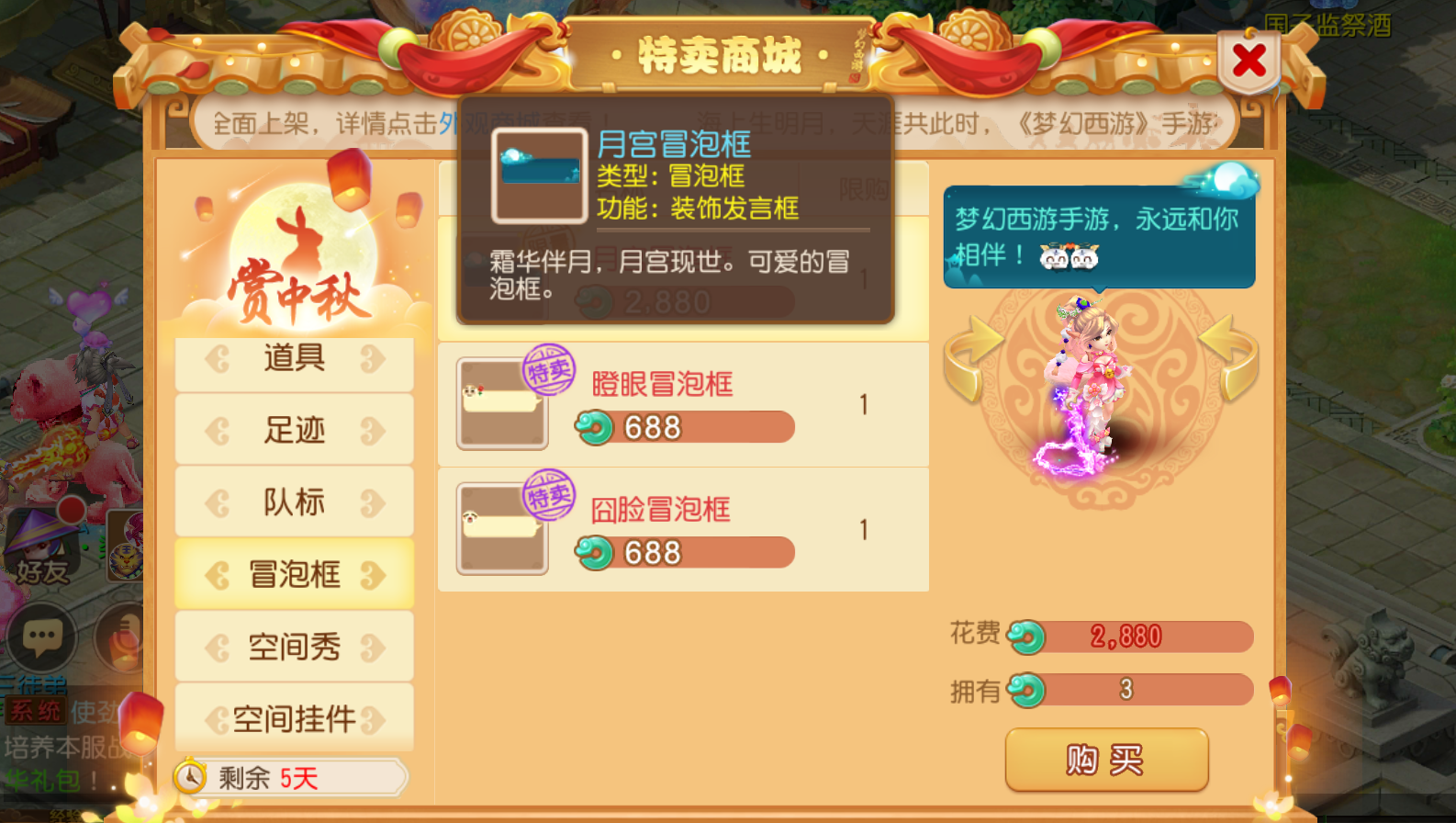 海上生明月,天涯共此时。中秋佳节的脚步已经临近,《梦幻西游》手游中秋特卖商城也已经正式上线。从即日起至9月16日,玩家可以前往中秋特卖商城,购买诸多折扣好礼。此外,全新坐骑东海鲸和新时装羽林郎、红妆铠也将在其中出售,喜爱这些新鲜好物的玩家,不妨早日将其收入囊中! 鲸跃东海!东海鲸萌动中秋 中秋佳节即将到来,《梦幻西游》手游在为玩家准备了丰富游戏活动同时,也推出了中秋特卖商城活动,让玩家能在这个节日中,以优惠价格获取自己心仪的好物。 作为中秋特卖商城的重点推荐商品,新坐骑东海鲸已经降临三界。东海出鲸鱼,日行三万里。它虽然体型健硕,但性情颇为温顺,它愿意为玩家在三界冒险的历程中保驾护航,让玩家的召唤兽获得更强大的战斗力。 随着东海鲸的上线,北冥有鱼系列队标、挂件和空间秀也同步推出。喜爱这一系列个性化装饰的玩家,千万不要错过这次的折扣机会哦! 岂曰无衣,新时装羽林郎、红妆铠上线 在新坐骑降临三界同时,新时装羽林郎(男)和红妆铠(女)也在中秋特卖商城同步上线,并以9折优惠价格限量出售。 这两套时装设计风格硬朗俊逸,尽显风流。玩家在购买了这两套服装后,可以将其赠予给自己的好友,或者通过摆摊出售给其他玩家。 低至五折!年度折扣不容错过 除了以上几大特推产品在,中秋特卖商城还上架了多种折扣商品,最低5折,为玩家送上满满福利! 在其中,玩家还可以购买到诸多人气游戏道具、个性足迹、冒泡框等好物,错过此次优惠,再等一年! 需要注意的是:部分商品在此次特卖中为限量出售商品,有相关需求的玩家不妨好好制订自己的购物计划,优先购买此类商品哦! 中秋佳节很快就将到来,在这个特别的时刻,《梦幻西游》手游诚邀各位玩家前来参与游戏活动,品鉴新坐骑和新时装,让自己在线上,与好友度过一段难忘回忆! |
