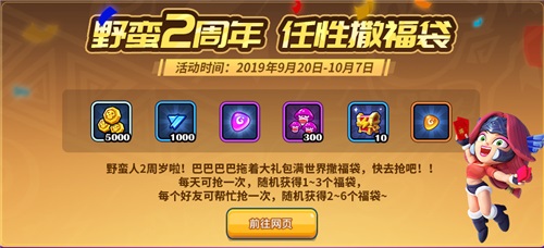 野蛮2岁,福利双倍!《野蛮人大作战》二周年临近,新版本更新以及一大波活动正在酝酿当中!全民狂欢福利多,今天小编就给大家带来2周年首发爆料!让我们一起来先记好笔记,周年庆不迷路哦~ 【野蛮2周年 任性撒福袋】 《野蛮人大作战》2周年特有首发活动——撒福袋!玩家们只需要动动手指,就可以打开免费福袋,免费领取海量奖励~ 当活动开启时,大家可以通过主界面看到抢福袋图标,点击进入网页即可参加本次的抢福袋活动~可随机获得六项奖励当中的其中1-3个福袋奖励哦~要是拿到“唤宠玉石”,那可就是绝美的奖励啦~ 当然,1-3个随机奖励或许还不够,那就赶紧让好友帮忙抢一抢,双倍欧气加持,可以获得2-6个随机福袋哟~ 活动持续开放,每天都能抢红包!! 活动时间:2019年9月20日——10月7日 【新版本外饰:英雄底座】 随着主界面的更改,作为一个大佬玩家如何在队伍里展现出自己的与众不同,是头像吗?是表情吗?都不是~请看下图,有没有发现哪里不一样了? 帅气的外表,魅力的样子当然需要一些小小的陪衬~有一个洋气的底座一定会成为人群中最靓的仔!本次更新全新增加英雄底座,可通过冒险岛巅峰打造系统中,使用指定配方打造获得。 底座可以在主界面展示,并且队友之间也是可见的,可以任意切换不同的底座哦~如此帅气的底座你值得拥有! 《野蛮人大作战》周年版本活动爆料会陆续发布,二周年庆版本即将开放。福利多多,内容多多,要持续关注哦~更多精彩内容请关注官方微信公众号:野蛮人大作战 【关于《野蛮人大作战》】 《野蛮人大作战》是一款将创造与战斗合二为一的奇妙游戏!所有元素,任你调配,战斗沙盒更有趣!技能随机、场景随机、每场都是新开局!你可以一秒开团实力战,也可以发散思维创世界,还有花样萌宠陪你挂机,奇妙剧情等你收集,多种玩法随你换!想要最强战斗力,还想提升创造力?嘿,快来这里,跟全世界的野蛮人一起! 官方Q群:424434850 微信公众号:野蛮人大作战 |