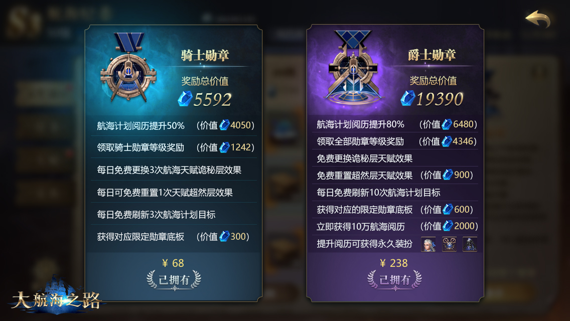 开启航海新纪元!《大航海之路》“航海纪”S3赛季正式来袭,大航海世界诚邀所有船长前来参与冒险,冲击荣耀王冠,创造属于自己的历史!参与“航海纪”S3赛季全新征程,船长们将有机会领取海量游戏道具奖励,还有机会获得包括S3航海纪限定时装“巫翎学院”、限量专属对话框、头像框等在内的限定外观奖励,更有唯一的限定称号和象征最高荣耀的冠军奖杯等你来拿! 冲击海上王冠 航海纪即将来袭 此次“航海纪”S3赛季将同样持续45天,船长需要尽可能多地累积航海阅历,解锁更多天赋属性,获得高层级天赋带来的强力效果加成,同时,冲击阅历排行榜冠军,最终成功登顶的船长,还将获得象征最高荣耀的冠军奖杯,并永久被载入大航海的游戏历史, 成为最让人崇拜的大航海家! 活动开启后,船长可通过完成不同难度级别的“航海纪任务目标”(分为“每日航海计划”和“赛季挑战”),分别获得丰厚的“航海阅历”奖励。 累积一定“航海阅历”数值,船长可提升阅历等级,领取对应等级的航海纪图册中的丰厚奖励之外,还可获得对应航海天赋点。全新天赋系统将总计分为8个层级,对应层级天赋升满之后,方可解锁更高层级天赋。船长可根据自身实际需要洗炼部分属性加成,同时,解锁高级天赋,船长还有机会获得额外效果加成。 同一赛季中,当船长的阅历等级达到满级(即50级)后,仍可继续完成航海任务获得航海积分,航海积分可以用于洗炼与解锁天赋属性,还可以兑换珍稀道具、限定头像框、对话框和S3航海纪永久限定时装“巫翎学院”! 此外,船长通过购买骑士勋章、爵士勋章,还可以获得航海计划阅历提升加成(分别为50%、80%)、免费刷新次数和全部勋章等级奖励,它们将极大地助力船长们的航海纪冒险之旅! 作为献给海上冒险家的终极奖励,每赛季,每个服务器内阅历获得排名第一的玩家(满级后额外转换为积分的阅历也纳入统计),将获得唯一的限定称号,以及象征最高荣耀的冠军奖杯,同时,赛季结束后阅历排名第一的船长,其名字还将被记录入奖杯的史册,成为大航海之路游戏历史上,最让人崇拜的大航海家! 开启航海新纪元,赢得专属荣耀,更有机会获得赛季专属时装,唯一限定称号,成为当之无愧的海上霸主!更多游戏信息,请关注《大航海之路》官网、官方论坛。 此外,网易和电信合作推出网易白金卡,玩游戏,听音乐,流量统统免费(包括网易所有产品),高铁玩游戏不掉线!惊喜多多,赶紧来体验吧! (PC端官网地址:https://bjk.163.com/) (移动端地址: https://red.163.com/hongka/hongka.html?cmpid=null&shopid=null#music_tk) |
