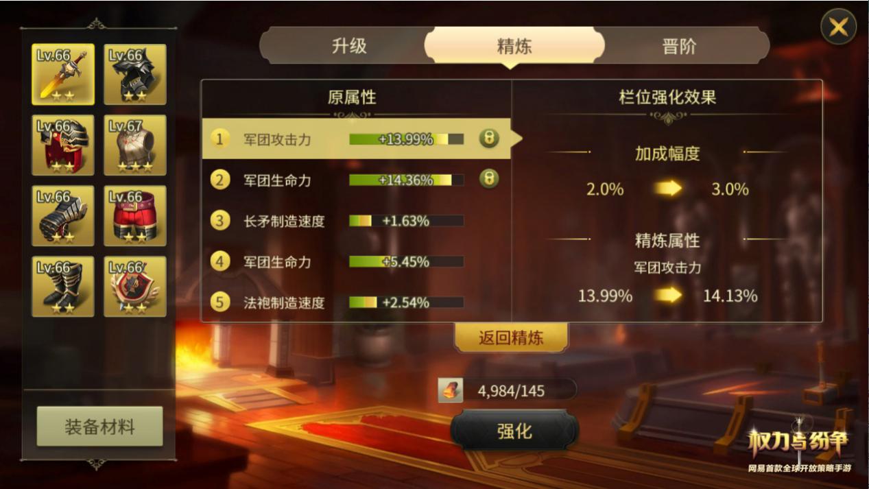 惊喜来袭,法维拉迎接新征途!网易首款全球开放策略手游《权力与纷争》全新版本今日上线,全新活动“纵横法维拉”、新版国王恩惠、装备精炼强化系统都将惊喜登场,高阶装备、侍从信物和海量资源宝箱等豪华奖励等待领主们来赢取!征途永无止境,惊喜不断来袭,更多新内容就在《权力与纷争》! 纵横无双!全新玩法“纵横法维拉”正式登场 为了给领主们带来更多的挑战和更有趣的游戏体验,全新活动玩法“纵横法维拉”即将惊喜登场。领主们通过收集建材、银克朗,就能获得活动积分,赢取5阶装备、装备宝箱、信物礼盒,获得实力大提升! 以收集建材为例,在活动开启之后,领主们可以通过建材加工厂生产、开启建材宝箱、进行贸易积累活动积分,除此之外,勇敢的领主更能通过掠夺玩家或者NPC的建材来增加活动积分!同样的,在收集银克朗的活动中,领主们也可以通过活动指定的途径达成任务并获取活动积分。在达成所有目标阶段、领取丰厚奖励的同时,玩家所累积的积分还能冲击排行榜,让领主成功登上王国排行、全服排行,在其他领主面前展现自己雄厚的资源实力!在排行榜上位列前茅的玩家更有机会获得排行榜大奖——5阶装备、装备宝箱、信物礼盒、技能残页礼包、 通用加速道具,锻造炉燃料,洗礼之水等丰富奖励等你来拿! 海量奖励!国王恩惠荣耀升级! 作为《权力与纷争》中领主们最早接触到的玩法之一,国王恩惠也在此次荣耀升级,不仅将为领主们带来更具创意的全新挑战,更丰厚的奖励也将同时来袭! 新版的国王恩惠玩法登场后,开服前7天(含当日),领主们每日都将开启一个特定的任务目标,在限定时间内完成当天的玩法任务,就能获得奖励!届时,“征服者”、“资源大亨”、“建造达人”、“侍从提升”、“装备锻造”、“侍从星级”以及“最终冲刺”七大活动将陆续上线,每一天都将给领主们带来不同的惊喜与考验! 领主们将凭借自己的实力,迎接来自建筑、生产、军团、科技、装备、侍从6大维度全方位的严峻考核,并与其他领主们展开综合实力大比拼,最终积分最高的强者们将登上排行榜前列,赢得国王赏赐的丰厚嘉奖! 全面武装!装备精炼强化系统上线! 除了全新的活动玩法接连登场之外,在此次的新版本中,装备精炼强化系统也将重磅来袭! 装备精炼强化系统上线后,领主们可以使用锻造炉燃料,对装备上随机属性种类的槽位进行精炼强化,定向提升该槽位的精炼属性数值。 每个装备都有5个槽位可以分别进行精炼强化,不过由于不同槽位的培养难度有所不同,系统还提供了精炼属性转移功能,让领主们能够将适合的精炼属性放入到指定槽位中,帮助大家更快调整装备的属性数值。 借由这个系统,领主们将能够根据自己的需求调整自己装备上的属性和数值,使其达到自己理想中的效果,如何最大化提升自己的装备实力,就看领主们的智慧了! 实力角逐,惊喜横扫法维拉!全新玩法“纵横法维拉”登场,为领主们带来海量奖励!国王恩惠活动焕新来袭,七大任务乐趣满满!全新装备精炼强化系统也将登场,助力领主快速提升装备属性,壮大自己的战斗实力!《权力与纷争》即将迎来全新版本,万千领主蓄势待发,王国传奇等你颠覆!游戏的更多玩法、更多精彩内容,请关注相关后续报道。 【关于《权力与纷争》】 《权力与纷争》是网易首款全球开放策略手游。游戏共有五大类型、四十余种不同建筑,玩家可在自己的领地中,精确规划资源实现最大化利用,发展农业、工业、军事,提升城市实力,抵御外敌入侵。游戏内有金钱帝国、工业巨擘与战争之王三大派系,各大派系天赋不同,给予玩家更多个性化发展空间,不同派系玩家也可通过合作共同提升实力。游戏中有丰富完善的贸易系统,玩家可凭借自己的商业能力低买高卖,上演逆袭。游戏中更有联盟竞赛与战争,及后期将要开启的跨服战和跨国战等多种战斗玩法,玩家可与真人斗智斗勇,享受策略战斗的快感。 官方网站:http://qlyfz.163.com/ 官方微博:https://weibo.com/qlyfz 官方微信:qlyfz163 |
