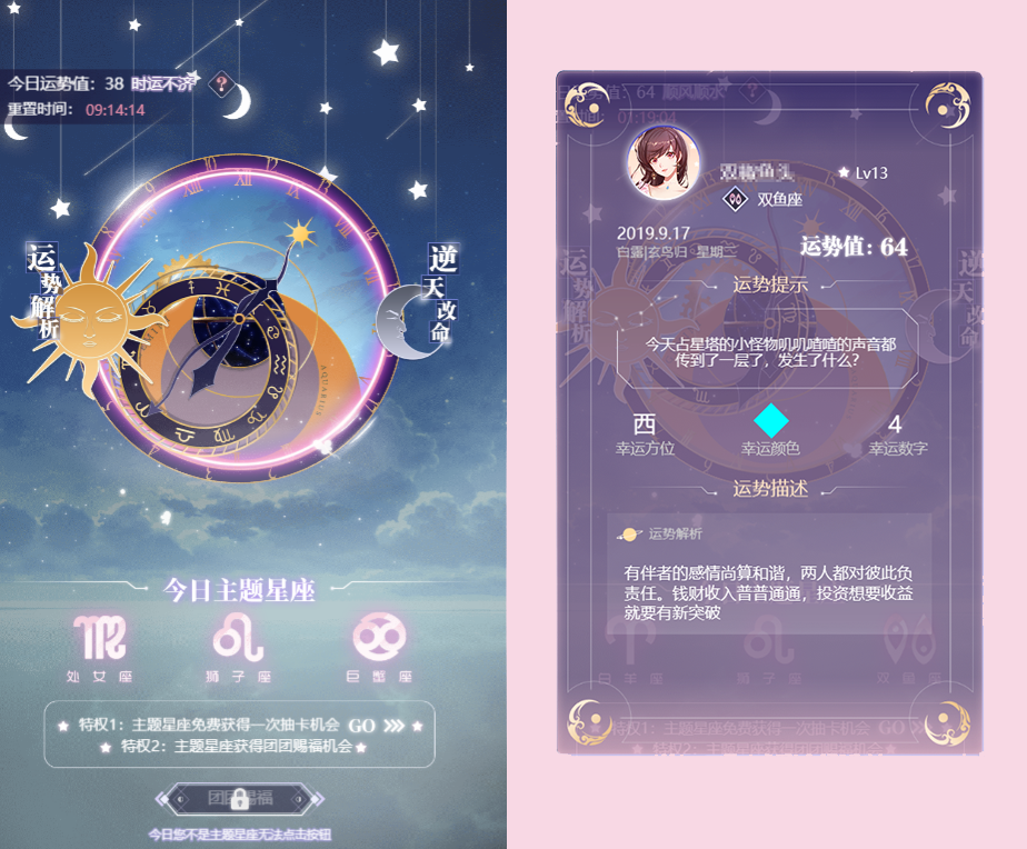 围绕星座运势,融入实时运势,占星祈愿,卡牌收集,成长竞技等元素的星座卡牌养成手游《我的星座契约》于9月24日10:00在TapTap开启独家测试! 紫月少女的巫格星往事 玩家进入紫月世界将成为一个拥有神秘身世的少女,在占星学院开启占星师成长之路,并在一系列的星座事件和冒险中获得星灵使的守护,一步步揭开巫格星的神秘往事。 紫月世界的冒险,将会让你结识12个不同星座、不同职业、性格迥异的神秘占星师:随心所欲、思维超前的影视投资人沈浪,实际上是水瓶座星殿殿主;羁傲不逊的男明星路南渡,实际上是射手座星殿殿主;温文尔雅而又忧郁清冷的作家温以梁,实际上是双鱼座星殿殿主......通过邂逅不断的星座男神,可以触发各种神秘事件,让您在占星学院的学习之旅更有代入感 占星学院的群星璀璨 为寻得巫格星失落的公主,十二星殿殿主跟随星辰女神在各个世界建造了十二座占星学院,占星学院带来的冒险和考验将使你成为一名真正的占星师。 每经过一段时间的历练就可参与占星师考试,提高占星师等级,从初级占星师一步步成长为最强占星师! 占星学院的后街有熙熙攘攘的行人,隐藏着神秘事件等待占星师去随机触发,同时会有神秘人物携带的惊喜等待着被你开启。 运势占卜、星辰祈愿等更多玩法 每日运势占卜和解析预示着一天的奇妙际遇和变幻多端的玩法体验,不同的运势也会影响其他的玩法。当日主题星座的占星师们还能获得比其他占星师更多的福利和奇遇彩蛋。 祈愿屋将向星辰女神传达占星师们的祈祷,派来星灵使跟随并守护着占星师们。随着占星师的成长和升级,星灵使也能一步步强大,占星天团的养成就看你了! 实时天气,来自星灵使的守护 紫月世界的天气根据玩家的定位,实时模拟现实中的天气。假如你身在梅雨季节的江南,游戏中也会阴雨连绵;如果你身处冰天雪地的东北,游戏中也会飘雪辉映,星灵使们都将二十四小时贴心守护。倾盆大雨时,后街的奇遇和星空探索也许会迟到,但是星灵使们的关心从不会迟到哦。 占星学院的大门今日开启,欢迎每一位怀揣成为占星师梦想的孩子们前来学习占星术,成为最强占星师。亿万星辰,也将为你闪耀。 关于《我的星座契约》 《我的星座契约》是一款以星座主题,融入实时运势,占星祈愿,卡牌收集,成长竞技为一体的休闲卡牌手游,不计费删档测试正火热开启中,更多登录奖励、测试纪念奖励和建议Bug收集奖励请移步TAPTAP和官网探秘。愿星辰女神永远宠爱您。 |