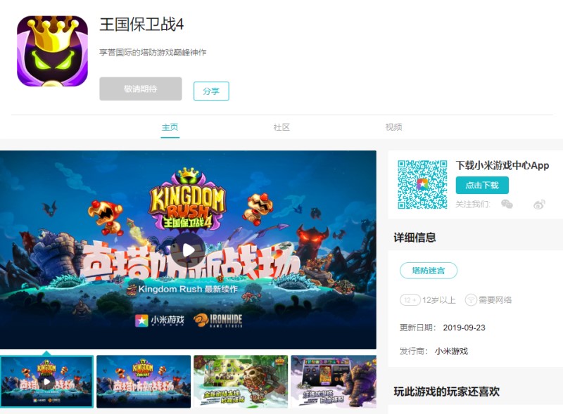9月24日消息,今天,有消息称小米游戏正式上线了《王国保卫战4》的官方网站(传送门:kr4.mi.com),并在各大主流安卓渠道都开启了游戏的预约。