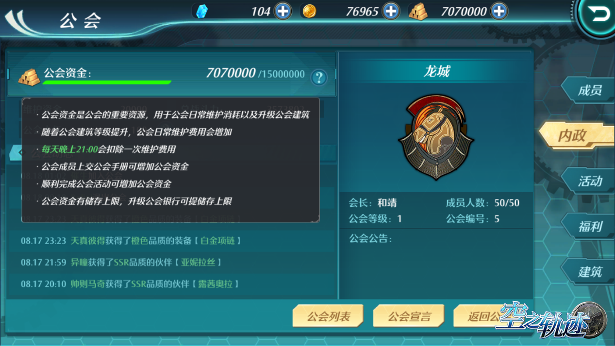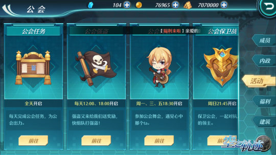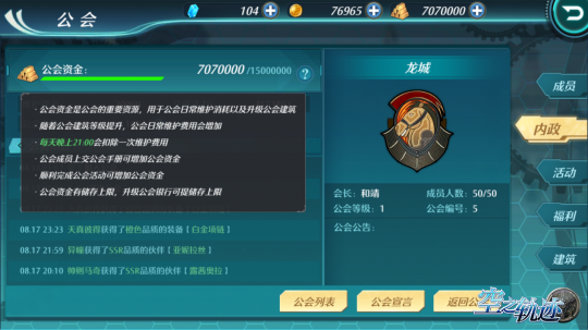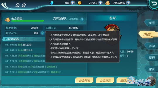 在《空之轨迹》手游中,当萌新适应了游戏节奏后,接下来最重要的事便是加入公会寻找一群志同道合的小伙伴啦!不仅能够开启更多活动与福利,还能结交超多的好友,赚取丰富的经验和奖励,并且公会商店中的道具也非常令人心动,今天就带领各位玩家来了解《空之轨迹》手游关于公会的那些事~ 拒当“独行侠”,加入公会寻找伙伴 因为在游戏中需要达到24级后方能开启公会,所以不想当独行侠的萌新们,需要尽快提升等级。在达到相应的等级要求之后,便会在主界面的右下角会发现“公会”按键,点击公会后即可进入公会界面。如果玩家还没有加入公会,那么这时候显示的就是公会列表,可以根据自己的需求来选一个,活跃公会自然也是最优选择。 人人为我我为人人,提升公会人气 当玩家加入公会后,便可以打开公会详细面板来查看具体情况。公会人气是重要指标之一,也就是公会的整体活跃度。公会成员每天首次登录游戏或者完成日常活动就可以增加公会的人气值,每晚凌晨12点系统会扣除一定量的人气。公会人气与公会福利息息相关,人气值如果下降,那就会影响玩家在公会里领到的工资,人气值长期下降的话,还会影响到公会发展,为了公会的前途,各位请努力地提升活跃度吧! 参与公会建设,积累公会资金 顾名思义,公会资金就是公会里的“共同存款”,公会的日常消耗、建筑维护、以及升级公会建筑都需要用到它。而且随着公会建筑等级的提升,所需的日常维护费用会越来越大。那么我们该如何避免公会的财政危机呢?有两种方法:上交公会手册,完成公会活动。公会活动因为方便所以优先度更高一些,只要按时完成公会活动,就不必担心公会陷入财政危机。 丰富公会活动,领取海量奖励 空轨手游的公会活动种类相当丰富,而且奖励都很不错,因为顾忌到上班族和学生党的时间问题,除了全天开启的公会任务外,其余四项公会活动的时间都集中在18:00——22:00这个时间段,所以玩家完全不用担心要花费中午的休息时间来刷任务。完成公会活动后,不仅能美滋滋刷一波公会贡献点,更能美滋滋地拿着掉落奖励给伙伴升级。这么爽的事情,你确定不来上一波? 专属福利装备,神秘公会宝箱 做出了应有的贡献,自然少不了应得的回馈。玩家所完成的日常任务和公会任务都将被公会记录下来,变成能够领取的工资。外面物资和装备卖的贵怎么办?公会专属,物美价廉的导力工房,你值得拥有。如果背包里有能够捐献给公会的资源,不要吝啬地捐出来吧,你将获得与捐献物品价值对等的公会贡献点。 当然,偶尔发个红包和公会里的朋友们联络联络感情也是个不错的选择,说不定你还有机会靠抢红包发家致富呢。众多福利中最让我心动的就是公会宝箱了,毕竟它太过神秘,所以自带迷人滤镜,有谁能告诉我宝箱里到底装了什么高大上的东西吗? 成员齐齐勉勉,协力共建公会 提升居住幸福感当然少不了漂亮的房子,公会建筑可是能一直升级的。不过鉴于公会建筑由公会酒馆、公会金库、公会灯塔和公会工房组成,所以想要升级整体的公会建筑,就必须先将这四个建筑全升级。虽然表面上看上去代价大了点,但是我分析完后你就知道有多划算了。首先酒馆升级后,能让公会吸纳更多新成员,创造高人气,人气高了领取到的公会工资也会相应增多。 接着最重要的金库,升级后不仅能提升资金储存上限,还能够获得1级公会宝箱;而提升灯塔就能提升公会守卫战首领的星级,工房等级上升后,除了获得加成3%的公会贡献外,还会出售一些我们急需的资源道具,重点强调:是不可多得的内部价哦~ 如果能在游戏的同时结识一大批志同道合的小伙伴,那简直是再幸福不过的事情了,收好这份《空之轨迹》手游公会攻略指南,你就能成为各大公会最抢手的香饽饽! |