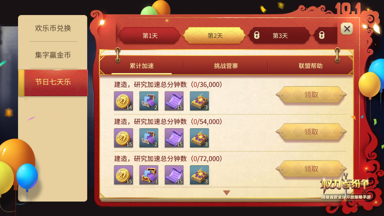 惊喜不断,法维拉假期乐不停!7天长假即将到来,《权力与纷争》也为领主们准备了五大福利活动,豪气放送假日好礼,陪伴大家度过愉快的节日!完成指定活动任务不仅能获得海量游戏道具,还能刮分1亿金克朗,更有累充得好礼等活动,等待大家前来参与! 节日七天乐!精彩福利不间断 法维拉迎来全新巨龙传说时代,为了犒劳勇敢抵御堕落巨龙的英勇领主们,在即将到来的假日里,法维拉大陆上也将迎来一段欢乐时光,“节日七天乐”特别活动将隆重登场,为领主们送上趣味挑战和海量福利! 2019年9月30日0点~2019年10月7日0点,“节日七天乐”活动就将正式在法维拉大陆上开启。在活动前五天里,每天都会解锁新的任务模块,等待领主们前来挑战。大家通过登录游戏、击杀强盗、挑战营寨、点燃爆竹、挖宝等等多种多样的途径,达成任务要求的指标,就能够获得装备宝箱、侍从信物、加速道具、侍从升星道具、侍从强化道具等等丰富好礼! 此外,完成任务的领主们还可以获得节日欢乐币,可以兑换史诗技能残页、装备材料碎片、侍从升星道具、加速道具等等各种需要的物资!在活动期间,击杀强盗和营寨也有几率获得节日欢乐币,领主们可以借此节日活动的机会,多多收集节日欢乐币,扩充自己的物资储备哦! 豪气大放送!集字刮分1亿金克朗 为了帮助领主们积累更多财富,在此次活动期间,《权力与纷争》也为大家准备了豪气十足的集字活动,还准备了1亿金克朗大奖作为回馈! 活动期间,领主们可以通过击杀强盗和营寨获取特殊的文字道具,集齐“权”“力”“与”“纷”“争”一套文字之后,就可以在活动界面处获取1点贡献点。节日活动结束后,系统将对大家的贡献点进行结算,届时领主们可以根据自己在活动期间累计取得的贡献点总数,和所有王国的领主们共同刮分总额1亿的金克朗!除了金克朗之外,领主们在活动中每获得1点贡献还可额外获取50金克朗!各位领主在节日期间多多收集文字,就能够将海量金克朗带回家! 法维拉馈赠!喜迎佳节领好礼 除了丰富的活动,《权力与纷争》也将为玩家们送上一份节日心意,10月1日0点,所有领主们都会收到一封祝福邮件,邮件会包含一份神秘礼包——包含高级神秘地图、通用加速道具、锻造炉燃料、洗礼之水等固定奖励,还有史诗装备、史诗侍从信物、史诗技能书等随机奖励等你抽取!请领主们记得到游戏中收取这份祝福好礼,也许会有意外的惊喜哦! 累充得好礼!豪华礼品送惊喜 节日活动期间,“累充得好礼”活动也将火热上线!领主们在活动期间的累计充值金额达到相应的档位后,就可以获取该档位的累充奖励,共有多个档次的累充奖励可供大家领取!龙焰军团行军皮肤,6阶自选装备,传说技能书,传奇信物自选箱,黑焰军团士兵皮肤自选箱等超值道具等你拿,机会难得,不要错过! 爆竹送祝福!多倍奖励等你赢 除了以上活动之外,法维拉大陆上也迎来了一场特别的“爆竹送祝福”欢庆活动,邀请领主们前来共同参与。活动开启之后,城市内原本可以被玩家铲除的小石块会自动被替换成爆竹的造型,领主们点击爆竹将其点燃,就能获得各种惊喜道具奖励,点燃爆竹还有较高几率获取多倍奖励,2倍、5倍、10倍……快来点燃爆竹领取属于你的专属祝福吧! 缤纷惊喜,玩转法维拉!《权力与纷争》手游的节日活动、全新任务挑战即将来袭,海量活动奖励等待领主们前来赢取!参与“节日七天乐”、集字活动更有机会刮分丰富道具奖励和1亿金克朗!此外,节日活动期间领主们可领取法维拉馈赠好礼,累计充值还有机会领取豪华奖励!爆竹声声送祝福,更有机会翻倍领奖!惊喜不断,福利降临,期望领主们能够在法维拉大陆上度过愉快的假期,进一步增强自己的实力,整装待发做好准备踏上未来的征途!关于游戏的更多玩法、更多精彩内容,请关注相关后续报道。 【关于《权力与纷争》】 《权力与纷争》是网易首款全球开放策略手游。游戏共有五大类型、四十余种不同建筑,玩家可在自己的领地中,精确规划资源实现最大化利用,发展农业、工业、军事,提升城市实力,抵御外敌入侵。游戏内有金钱帝国、工业巨擘与战争之王三大派系,各大派系天赋不同,给予玩家更多个性化发展空间,不同派系玩家也可通过合作共同提升实力。游戏中有丰富完善的贸易系统,玩家可凭借自己的商业能力低买高卖,上演逆袭。游戏中更有联盟竞赛与战争,及后期将要开启的跨服战和跨国战等多种战斗玩法,玩家可与真人斗智斗勇,享受策略战斗的快感。 官方网站:http://qlyfz.163.com/ 官方微博:https://weibo.com/qlyfz 官方微信:qlyfz163 |