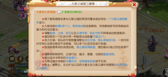 10月10日,万众期待的九黎之墟第三赛季全面打响!来自数百服务器的无数帮派将汇聚于九黎之墟中,为自己的帮派而战。在接下来的六周时间里,谁能拔得头筹,如愿以偿?让我们锁定九黎之墟第三赛季,感受这一策略玩法的魅力吧! 活动主页:https://my.163.com/jlzx/ 荣耀起航!九黎之墟第三赛季正式开战 在经过了两周的报名阶段后,《梦幻西游》手游九黎之墟第三赛季今日正式打响。在10月10日~11月21日期间,成功报名参赛的帮派,可以邀请其帮派成员进入九黎之墟,通过采集、攻城、侦查、搜索、建造、外交等任务,扩充帮派在九黎之墟中的势力范围,进而争夺其他帮派的势力范围,以此来赢得九黎之墟的最终胜利。 在这一策略玩法中,个人实力不再是决定胜负的关键所在,只有每个帮派的成员齐心协力,共同进退,才有可能将胜利之果收入囊中! 体验升级,合纵连横随心所欲 和往届九黎之墟一样,本届九黎之墟在收集了玩家意见的基础上,对活动规则进行了一系列的调整。这些调整除了让帮派与帮派的实力更为平衡外,也将改变不同帮派在九黎之墟中所采取的策略。 在这些调整中,许多帮派尤其关注的是匹配规则的调整。此次九黎之墟帮派匹配机制,将尽可能保证每个服务器中报名参与九黎之墟的帮派,可以在同一个地图中进行对战。这一匹配规则不仅能让玩家与更多熟悉的帮派进行战斗,也将方便玩家能够联系更多的同服务器帮派,齐心协力,赢得战斗。 莽猛犸至,集结英雄赢取回报 在接下来的六个星期时间里,所有参赛玩家将齐心协力,为帮派胜利而战。为了犒赏这些玩家,《梦幻西游》手游也为表现出色的帮派和玩家准备了丰厚奖励。届时,这些玩家将根据贡献,获得限时专属坐骑莽猛犸、特殊称谓、称谓特效、礼包等奖励。而表现出色的帮派,也将获得数量不等的超级幻色丹、帮派如意锦囊、金刚定魂礼包、五宝礼包等好礼! 《梦幻西游》手游第三届九黎之墟今日正式开战。在这一赛季中,每个参赛的帮派成员都需要在自己的位置上,为帮派作出贡献,集思广益,让帮派获得更多的可能。从而使自己的帮派,能够在九黎之墟中,赢得更好的成绩! |