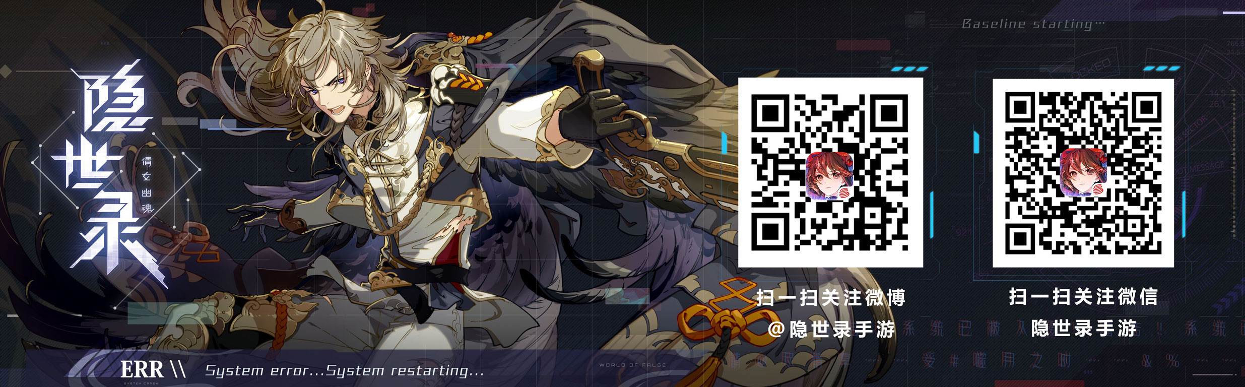 1024,必有大事!《隐世录》开发组首次爆料直播,10月24日程序员节晚8点,哔哩哔哩官方“隐世录”直播间,与特邀嘉宾“逍遥散人”、“解说七老爷”一起脱发开播! 自首测以来,《隐世录》手游作为一款围绕“BUG”展开设定的新游,其虚拟与现实交错的世界观设定,和“古风+电子”的美术风格,是玩家较为关注的特点。“BUG手游”《隐世录》,与1024程序员节这个与“BUG”话题最为靠近的日子,可以说是有着天然的“缘分”。 本次直播,《隐世录》开发组还将分享游戏开发秘闻,更加详细深入的全新世界观概念、重要角色资讯等内容也将一一曝光。 【开发组秘闻:为“BUG”脱发?】 在《隐世录》手游的设定中,因为BUG的存在,本来遵循程序运行的NPC,逐渐发现表面上平静祥和的隐世,实际却是由代码组成的虚拟游戏世界…… 而游戏世界之外,开发组成员也似乎在与“BUG”艰苦战斗的过程中,渐渐发生了一些变化…… 近年来,互联网员工加班多,工作压力大,甚至于脱发等话题也受到了不少关注。在程序员节的这一天,让我们为拯救开发组的发线,献出一点力量。 在这个种头发小游戏中,玩家还可以选择不同的NPC理发师助手加油鼓气。只要胆子大,种出BUG头发!扫一扫下方二维码或点击链接(https://ysl.163.com/2019/1024happy/m/),立刻为开发组种头发! 【知名UP主脱发直播,超多福利随机掉落!】 关注bilibili哔哩哔哩平台“隐世录”官方直播间(直播间房号: 21611998 链接:https://live.bilibili.com/21611998),10月24日当晚8点《隐世录》开发组在线爆料! 关注官方微博@隐世录手游,关注官方微信“隐世录手游”(yslsy163),了解更多直播资讯,官方猛料、周边福利一网打尽! |
