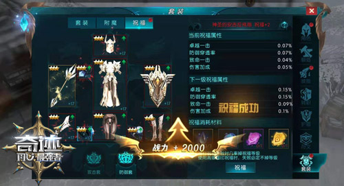 战斗不息,奋斗不止,《奇迹:最强者》中玩家走到大师级,拥有神圣武器甚至大天使武器,绝对不是终点,而只是有了更进一步的基础。最新上线的天使祝福系统很好的证明了这一点,梦想御天下,打造至强兵器的勇士,抓紧刷脸祝福下。 为什么说刷脸刷祝福,因为新系统——天使祝福与以往其他强化类系统不同,强化失败不会有幸运值的积累,且祝福失败时有几率掉祝福等级。虽然基础的祝福材料“天使之泪”获取相对容易,但祝福的按钮,点的人心惊肉跳,如果想要稳妥提升,大可添加祝福符文增加成功率。 想要接受祝福系统的洗礼,装备品质不达标可不行,目前版本中,只有7阶及以上传说、神圣装备饰品及大天使武器才可以进行祝福。使用天使之泪对装备进行祝福,可以增加装备的卓越属性,每条祝福携带4条属性,简单归纳左右手武器,项链,戒指,指环祝福后增加攻击向能力 ;头盔,盔甲,护手,护腿,靴子祝福后增加防御向能力。虽说各级祝福属性相差只有零点几分毫,但是高手过招差之分毫失之千里。 虽说祝福系统不能与装备强化系统一样,积累祝福幸运值,但同样的祝福效果是可以承袭的,如装备进阶后,原装备的祝福等级最多降3级转移到新装备上。 祝福系统不是独立存在的,而是成体系的,如果玩家的多件装备被祝福等级累计到一定程度时还可激发攻击套或防御套效果,4大基础属性之外更多一份惊喜。 装备精进,优先祝福,《奇迹:最强者》天使祝福系统给高玩带来了新的提升机遇,想要抢夺先机的勇士,率先祝福起来! 关于《奇迹:最强者》手游: 《奇迹:最强者》是由韩国网禅《奇迹MU》端游正版授权,塔人《奇迹MU》端游原班运营团队打造,龙图游戏发行的3D魔幻MMORPG手游。产品延续《奇迹MU》端游中人类和魔族斗争的故事主线,继承原作地图场景及职业角色设定,高度还原了一系列代表性的装备、翅膀、坐骑精灵,并完美复刻自由PK、盟战、攻城战等PVP玩法,以及恶魔广场、血色城堡、赤色要塞等地下城玩法。游戏拥有优秀的美术品质,经典的内容玩法,丰富的战斗体验,让我们重归MU王国,血战奇迹! 图:官方公众号 《奇迹:最强者》官方微信:奇迹MU最强者(qjmuzqz) |