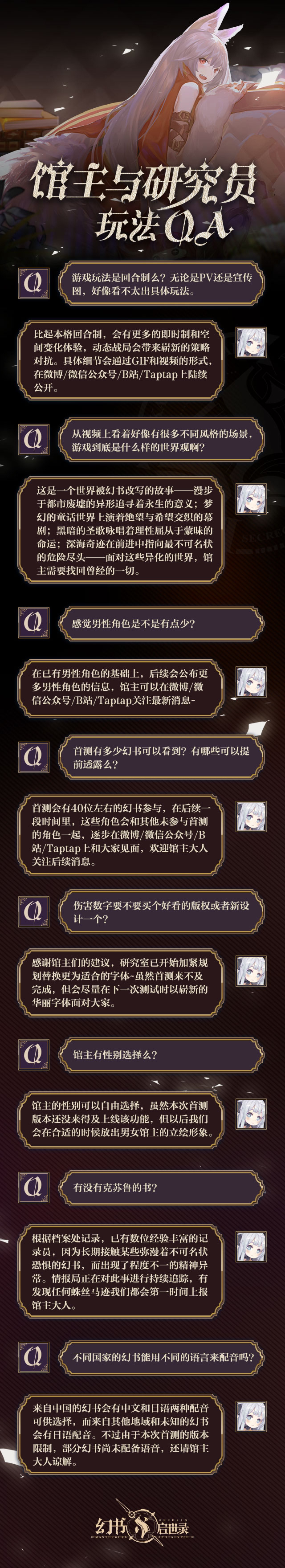以我们的意志书写世界!网易自研多世界幻想RPG手游《幻书启世录》将于明日正式开启首次iOS删档技术测试!各位期待已久的馆主大大可以开启一场多重世界穿越之旅,体验和幻书之间真实可感的3D互动。更可以在创新的战斗玩法中,感受多元立体的策略表现! 自“阿克夏之火”被带到人间,人类文明得以传承。从“阿克夏之火”中诞生的“幻书”,则成为了人类知识的守护者。阿克夏之火以书籍为蓝本创造出的守护者,是一些特定的“灵智”的实体化产物。 阿克夏之火所选中的人类,将会被阿克夏之火赋予一簇契约之火,使其成为能够指挥操控幻书的幻书使。并不是所有人类的灵魂都能承受阿克夏的力量,因此也只有少数人能够成为幻书使。 本次iOS删档技术测试中,提前预约游戏并获得测试资格的馆主大大们,将在明天入驻阿克夏之馆,带领幻书们为修复破碎的世界而战!此次测试将从10月24日11:00持续到10月27日11:00。 通过筛选的iOS用户会收到邮件发送的Testflight测试邀请,馆主大大们请不要忘记查收邮箱。收到邀请后即可按流程下载客户端。测试结束前,还请不要随意删除下载包! 《幻书启世录》首次小规模技术测试Testflight详细教程: https://hsqsl.163.com/news/20191022/30902_842292.html 初入幻书世界,身为馆主的我能做些什么?《幻书启世录》特意为各位馆主大大们准备了详细的玩法解答,只要认真看完下图,想必就能解开馆主大人的疑惑了! 本次测试为封闭性测试,很多内容尚不完整,也有可能在以后进行大量调整。为了将最好的效果呈现给更多关注我们的馆主,还请参与测试的馆主大人暂时不要将游戏截图或视频发布到公共网络。欢迎参与测试的馆主大大们加入幻书启世录首测群(QQ群号:936535050),加入群时需要验证首测的登记邮箱哦~ 此次未能获取测试资格的馆主切莫着急,欢迎馆主关注《幻书启世录》的官方微信、微博、Taptap、B站等各大社区平台,第一时间掌握后续测试信息,更有各种互动抽奖等待各位馆主参与! 如需进一步交流或有任何问题,可通过以下渠道联系我们: 微信公众号:huanshu163 官网:https://hsqsl.163.com 微博:幻书启世录 官方贴吧:幻书启世录吧 B站主页:https://space.bilibili.com/430897760/ Taptap:https://www.taptap.com/app/166951 玩家交流QQ群:571812737 |