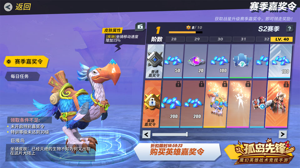 踏上荣耀之路,为新赛季挥洒热血!10月24日,网易首款魔幻多英雄战术竞技手游《孤岛先锋》全新资料片“荣耀之路”震撼上线,为S2赛季点燃启动式!为了给先锋官们提供更加优越的竞技体验,《孤岛先锋》全新任务、奖励系统、英雄养成等玩法同步开启,更有海量新品道具礼包登场,为新赛季扬威助力! 全新赛季开启 荣耀之路为英雄助力 10月24号更新后,S1赛季正式落下帷幕,更加火热的S2赛季为先锋官们开启新的竞技舞台,同时新赛季的奖励系统“荣耀之路”上线。当玩家完成比赛后,系统会根据当局比赛的表现颁发荣耀勋章,荣耀勋章积累一定数量即可领取相应的奖励,奖励包括、英雄养成素材、永久英雄、限免英雄栏位、全新秘宝、金币、战星、金钥匙、英雄能量及天赋书等珍稀道具。 全新赛季有全新嘉奖令相伴,本期嘉奖令同样有多种版本供先锋官们选择,更有丰富奖励等你解锁。其中夜之魔女传奇皮肤“戏班明星”、七海霸主传奇皮肤“厄运草人”、坐骑传奇皮肤“巨喙鸟”造型惊艳酷炫,让你在竞技场上光彩更胜一筹。此外还有英雄能量、点券、秘宝钥匙等奖励,让挑战升级畅通无阻。 荣耀之路版本更新后,《孤岛先锋》每日任务将扩充为9个,玩家每日完成后可获得战星、钻石、金钥匙等奖励。同时任务系统奖励全面升级,不仅增加了战星宝箱等内容,奖励物品也更加丰厚。两种宝箱开启后均有概率获得英雄能量、金币、天赋技能书和钻石等道具。 英雄天赋开启 全新养成更多自由 在新版本中,每位英雄将拥有12个普通天赋和2个终极天赋,先锋官们可以尝试更多的英雄养成路线,战斗玩法也将更加丰富多变。同时《孤岛先锋》还新增了大量英雄天赋系统专属资源,帮助玩家尽快验收养成效果。其中包括:英雄金币、英雄能量、终极天赋书等道具,玩家可以通过完成每日任务、开启战星/黄金宝箱或是在荣耀之路中获取。 培养英雄之前先要招募英雄,全新版本中英雄获取途径迎来更新,永久英雄“密林游侠”可以通过七天签到领取,而更多英雄则可以前往英雄界面购买查看。后续还将不断有新英雄登场,关注每期英雄嘉年华即可在第一时间体验。本次魅影特工嘉年华启动后,玩家可通过抽取获得“魅影特工”以及人物皮肤、枪械皮肤、舞蹈动作等重磅奖励。 新赛季宝箱 魔法女仆与蔷薇 新赛季开启后赛季宝箱也正式上新,穿着小红帽的魔法女仆俏丽登场,上演不一样的童话。玩家通过抽取宝箱获得暗影舞者的专属可升级皮肤,展现“森林冒险”、“木屋奇遇”、“魔法女仆”三种不同形态之美。魔法女仆还拥有定制技能特效、专属武器皮肤“蔷薇”、和“金丝楠”,将森林的魔力掌握于手。 全新版本中秘宝系统也迎来了大量上新,8种新秘宝:好运饼干、魔法棱镜、符能战甲、顽童面具、五彩风车、断魂刃、彩虹弹簧、星辰之石联袂登场,玩家可以在荣耀之路中解锁它们的使用权限,创造更多秘宝战术。 “新”内容如潮而至,商城货架当然不能落后。新增的新手抢翻礼,为玩家送上密林游侠皮肤“西部牛仔”和舞蹈动作“夏威夷摇摆”,让西部大漠风情与海洋阳光气质并肩出现。此外更有全新皮肤折扣礼包,购买后可获得七海霸主、暗影舞者、夜之魔女等史诗皮肤,为你的英雄们丰富衣柜。 荣耀之路并肩踏,竞技交流论英雄!网易首款魔幻多英雄战术竞技手游《孤岛先锋》全新资料片开启,即刻登录游戏官网了解更多赛制奖励与福利惊喜,让热血驱散降温烦恼,畅享开黑乐趣! 游戏官网:http://gd.163.com/ 官方微信:网易孤岛先锋(wygdxfsy) 官方微博:https://weibo.com/u/6391626461 关于《孤岛先锋》: 《孤岛先锋》 首创多英雄魔幻战术竞技玩法,六大首发英雄,技能自由搭配,隐身、突进、控制、伤害无所不能!全新魔幻世界,多种族地形植被;圣堂祈祷系统,装备助你火力全开;随身恐龙坐骑,一键召唤策马奔腾;双重复活机制,淘汰化身小萌龙,坚持就能原地复活!魔性趣味玩法,紧张刺激惊喜不断! |